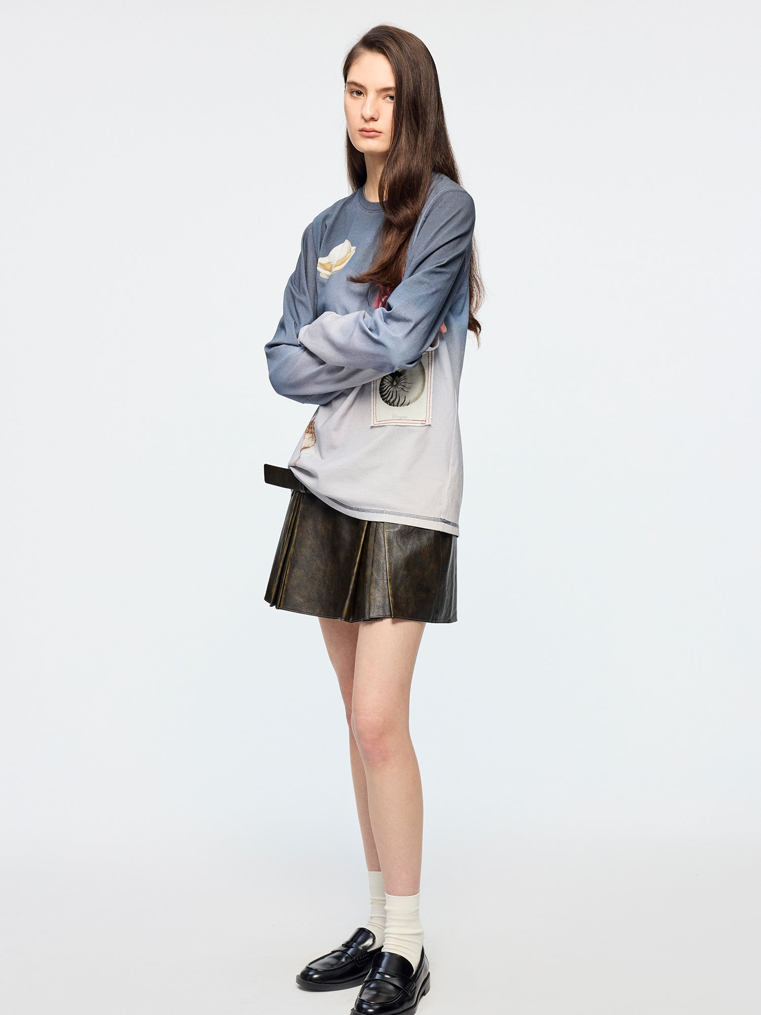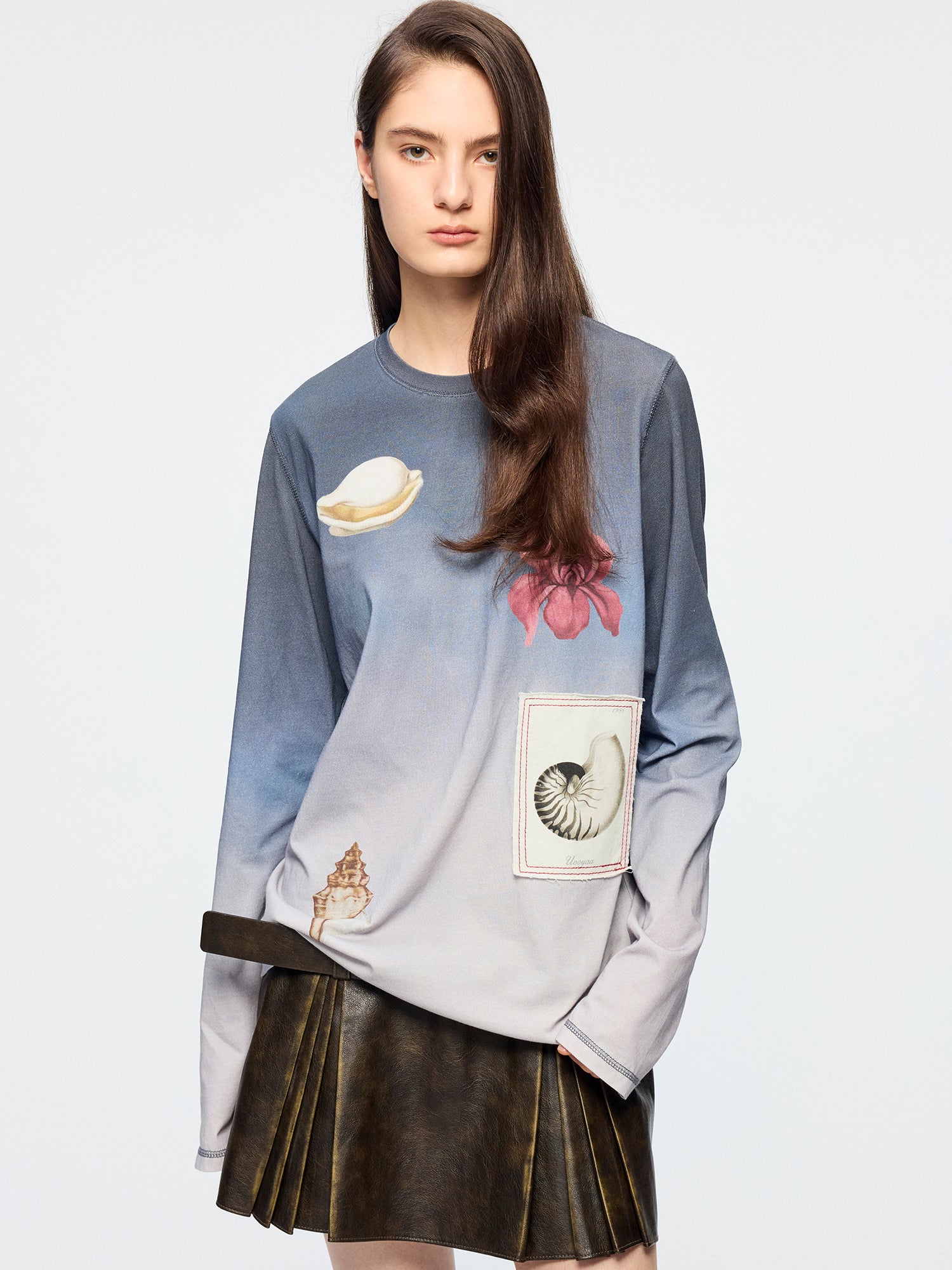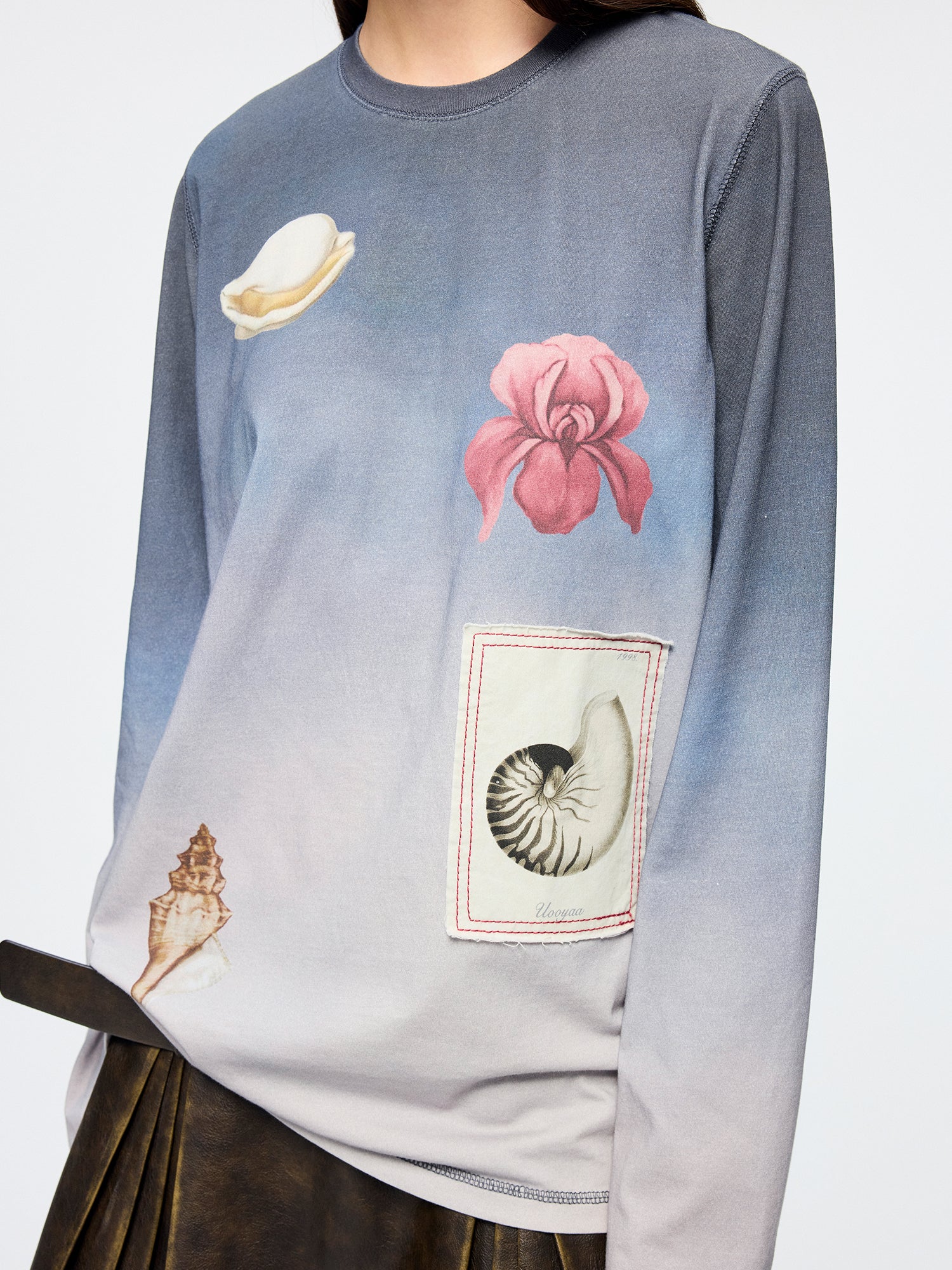 Gradient long sleeve t-shirt with fantasy undersea motif
