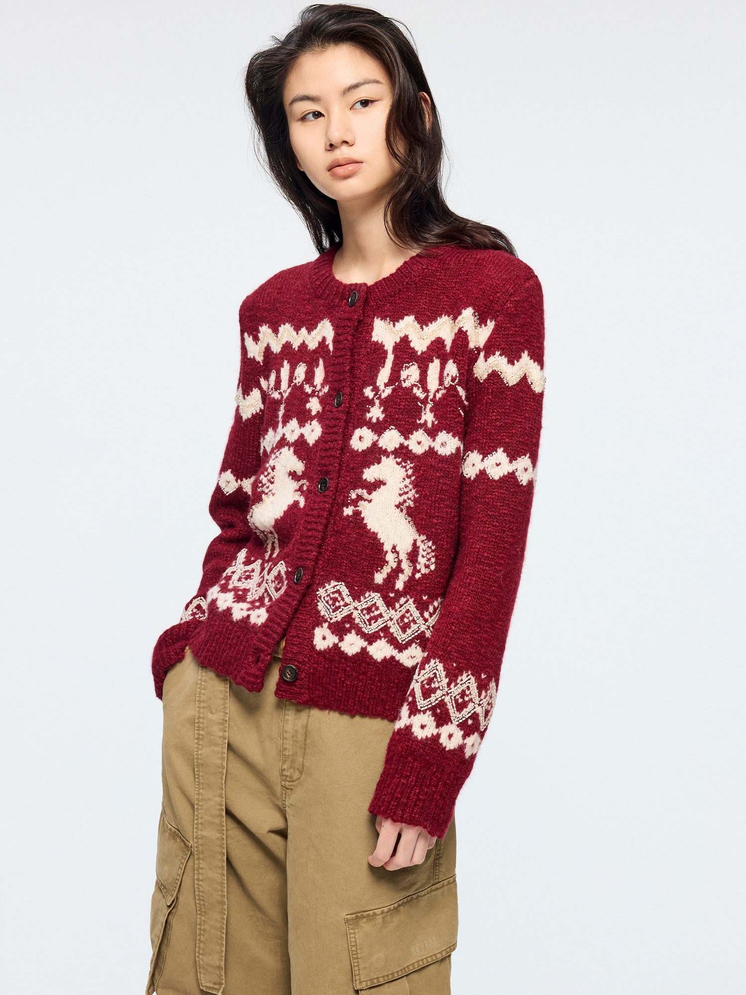 Year of the Horse limited beaded fair isle cardigan