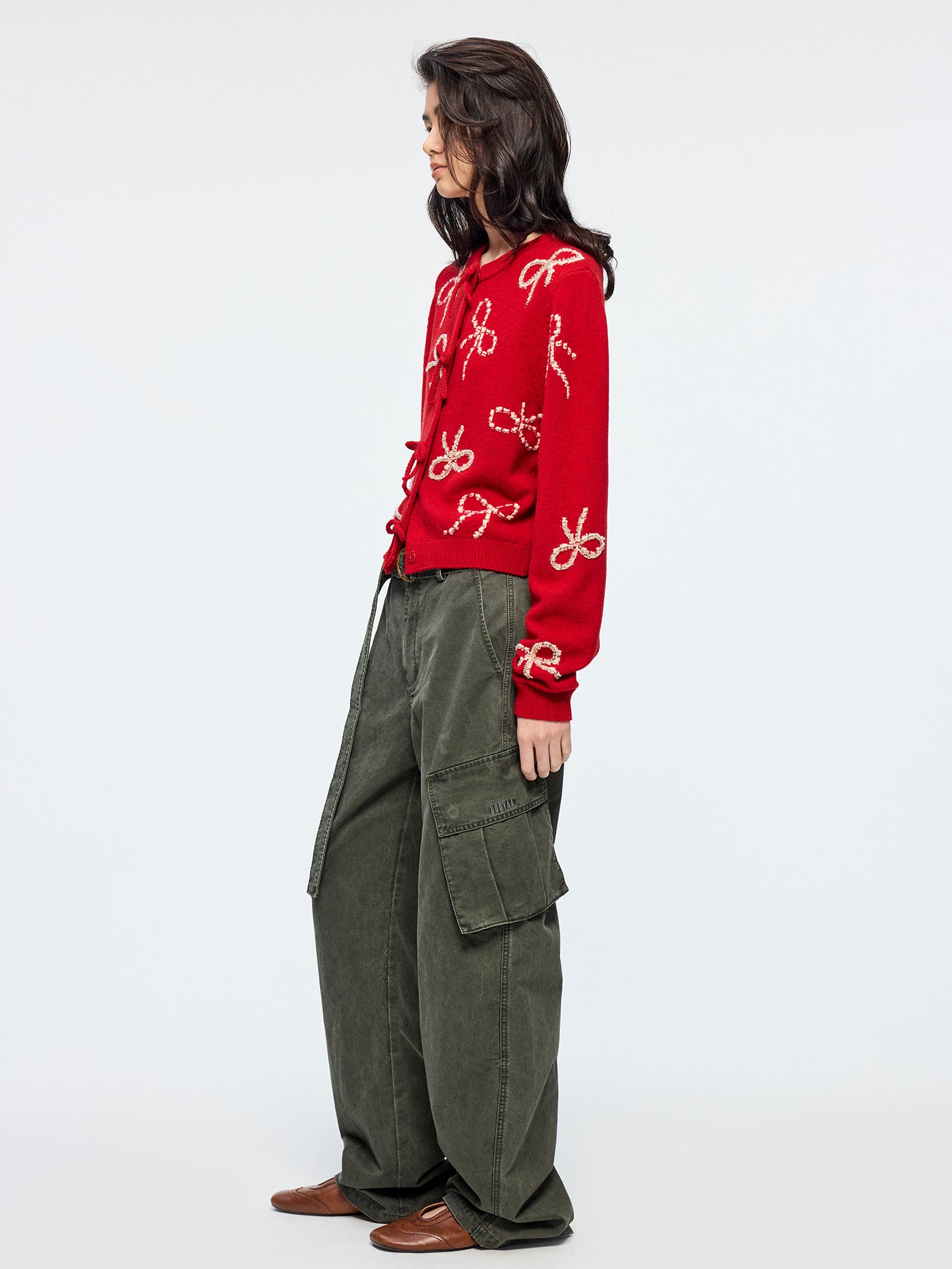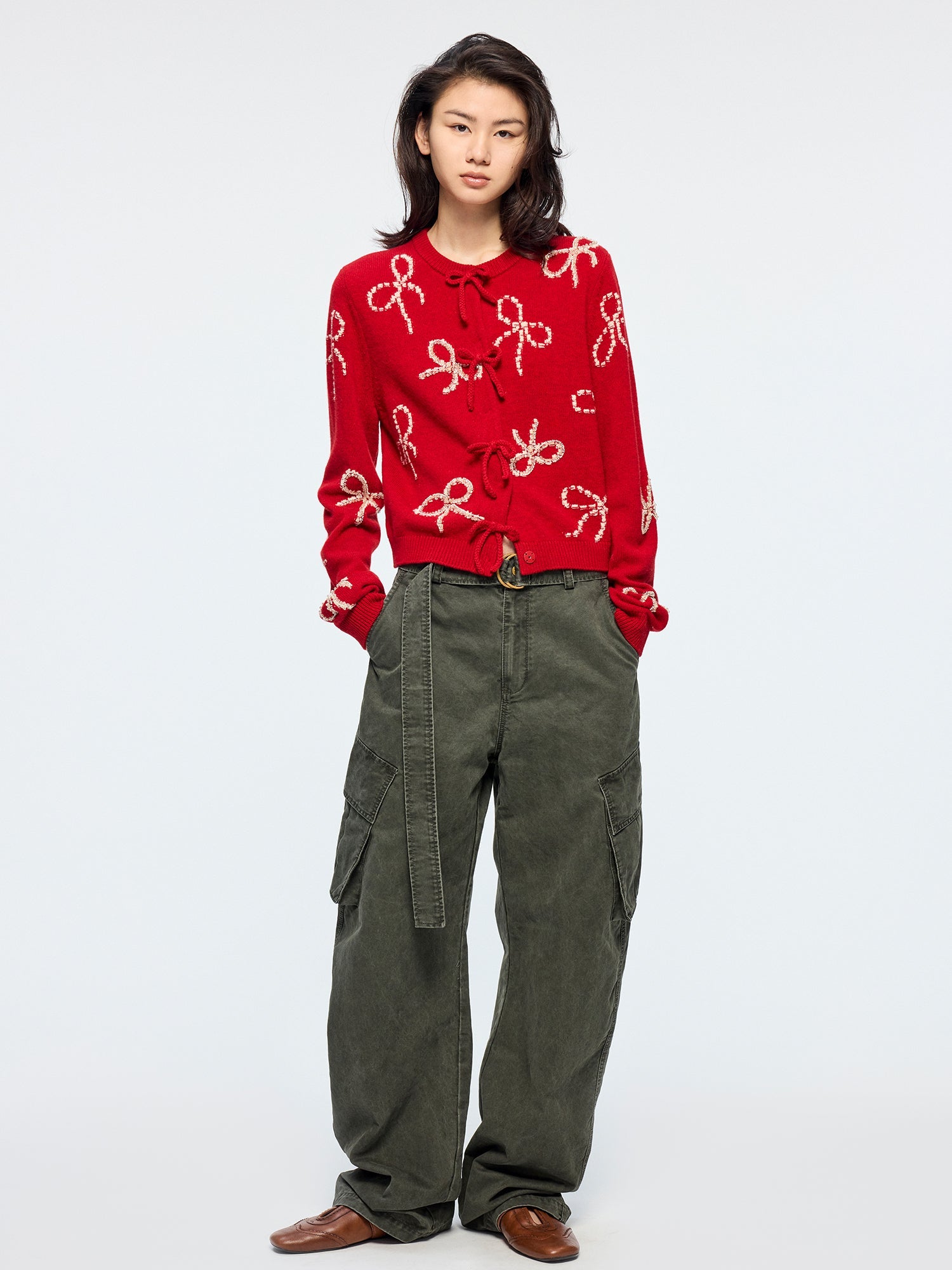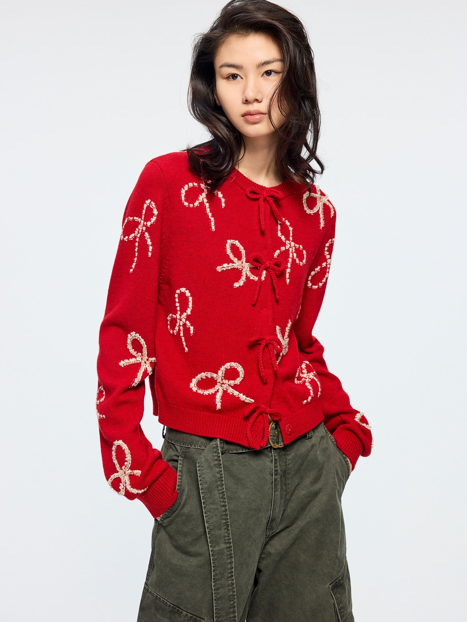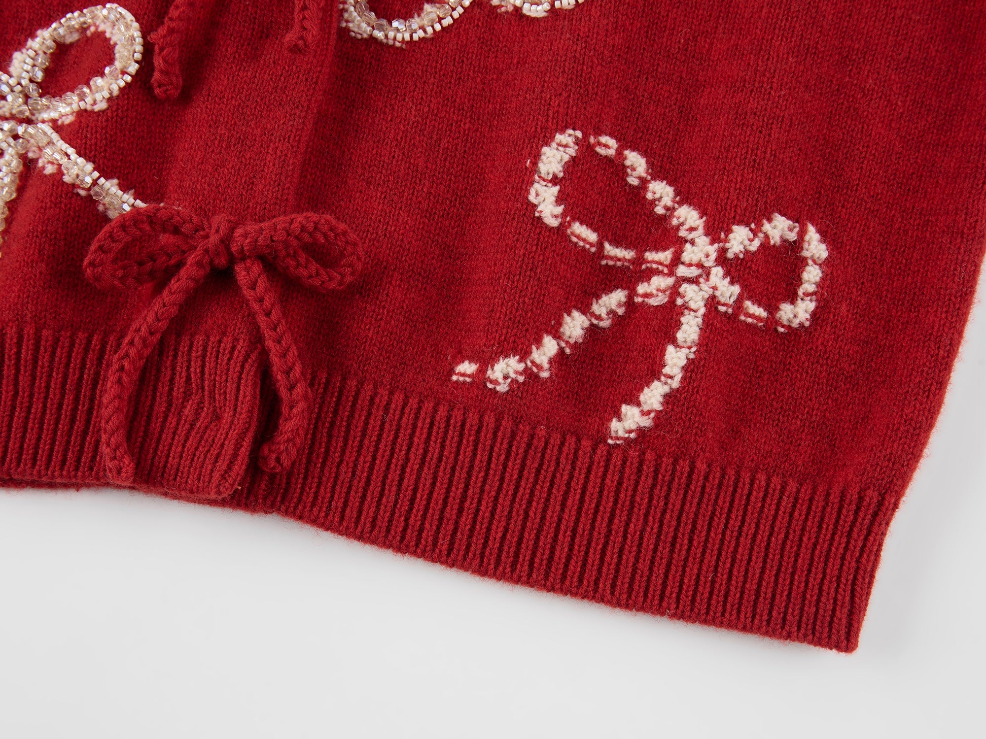 Beaded embroidered bow cardigan