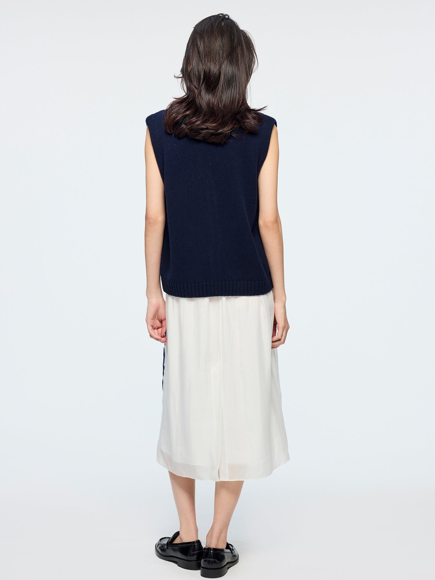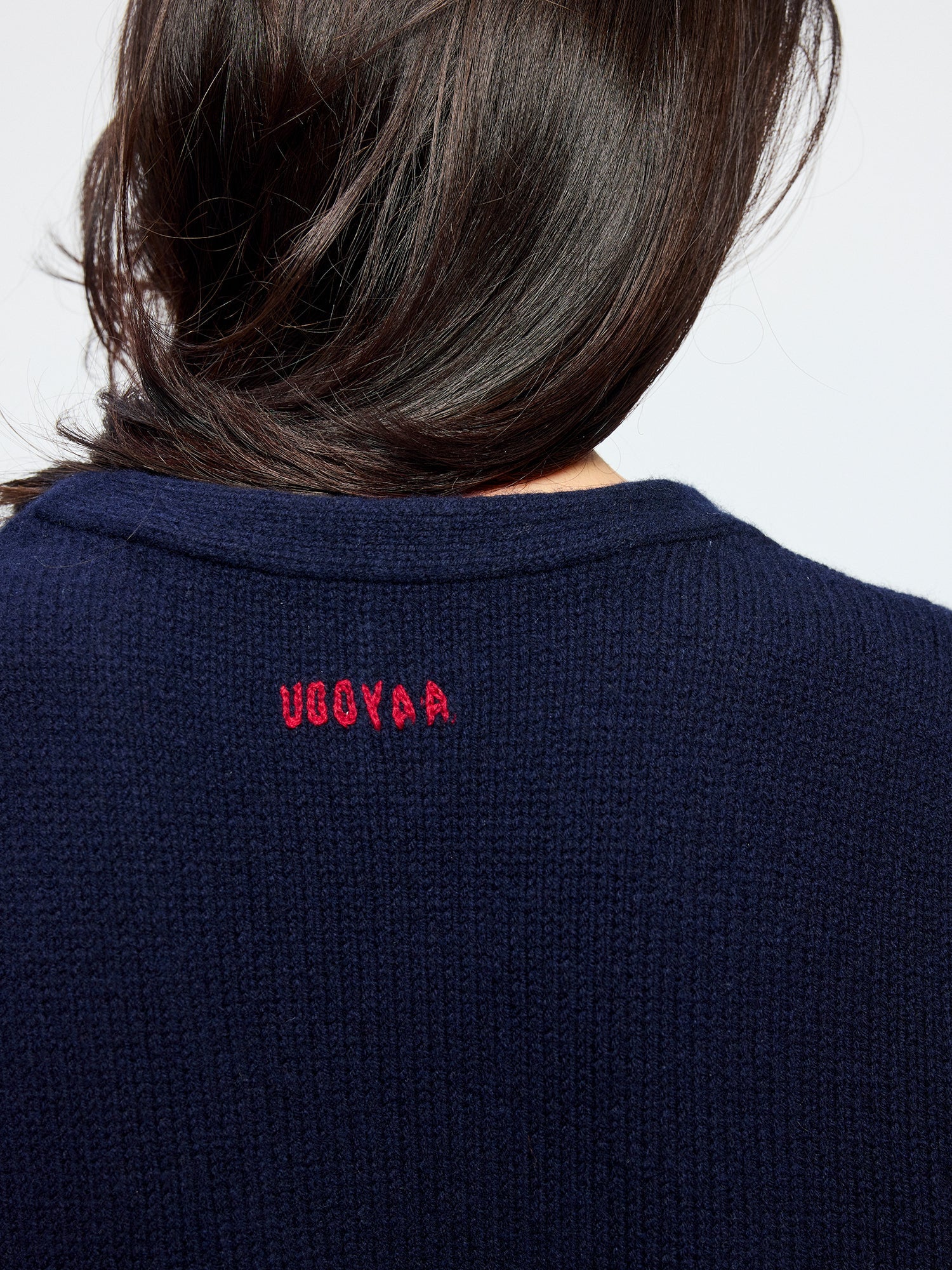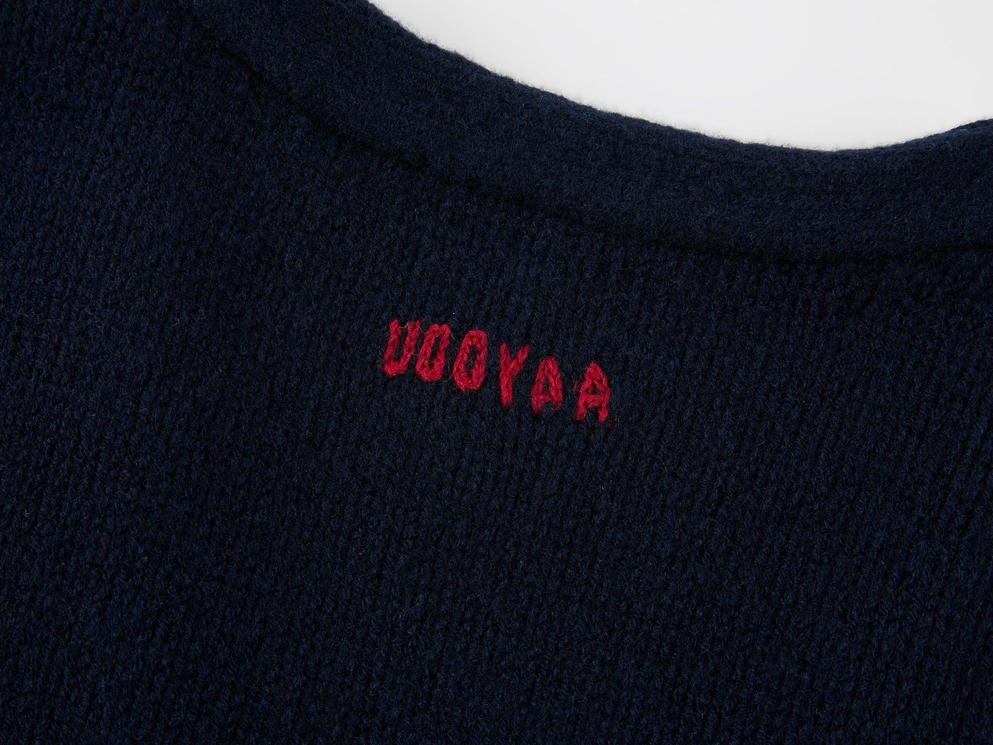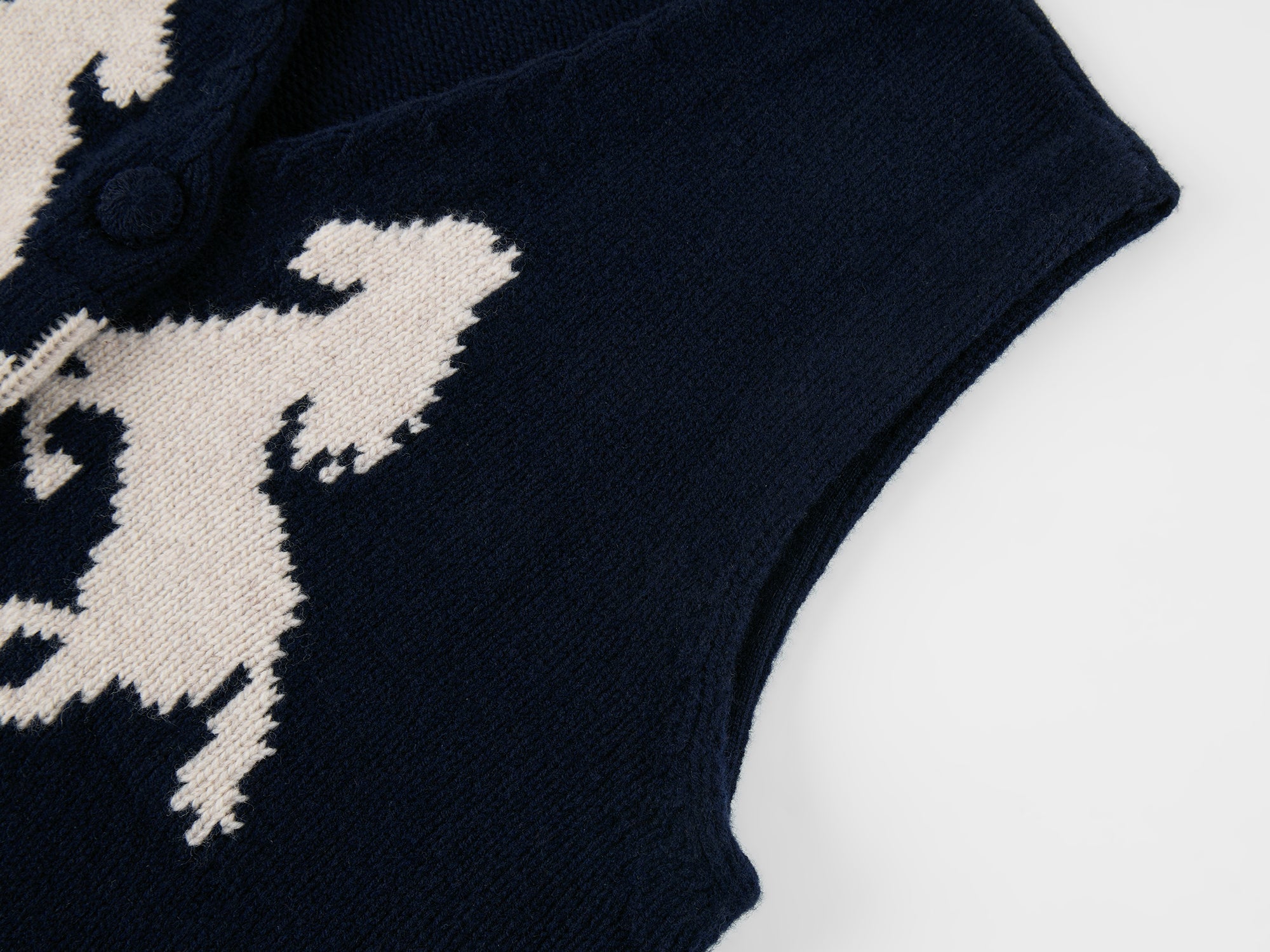Classic navy and white colorway. 100% pure wool yarn offers a soft, skin-friendly touch for a smart, youthful look.Fabric: