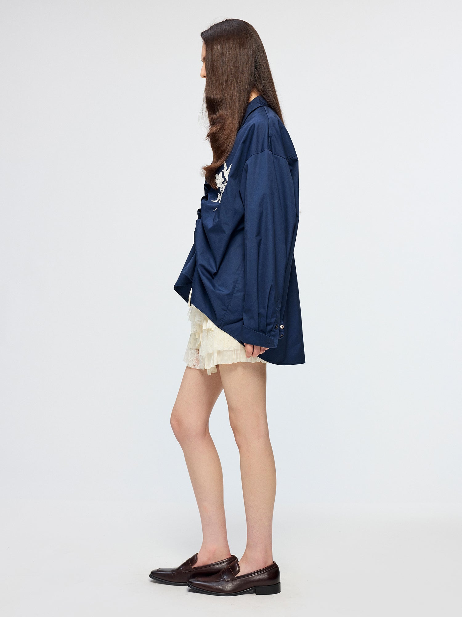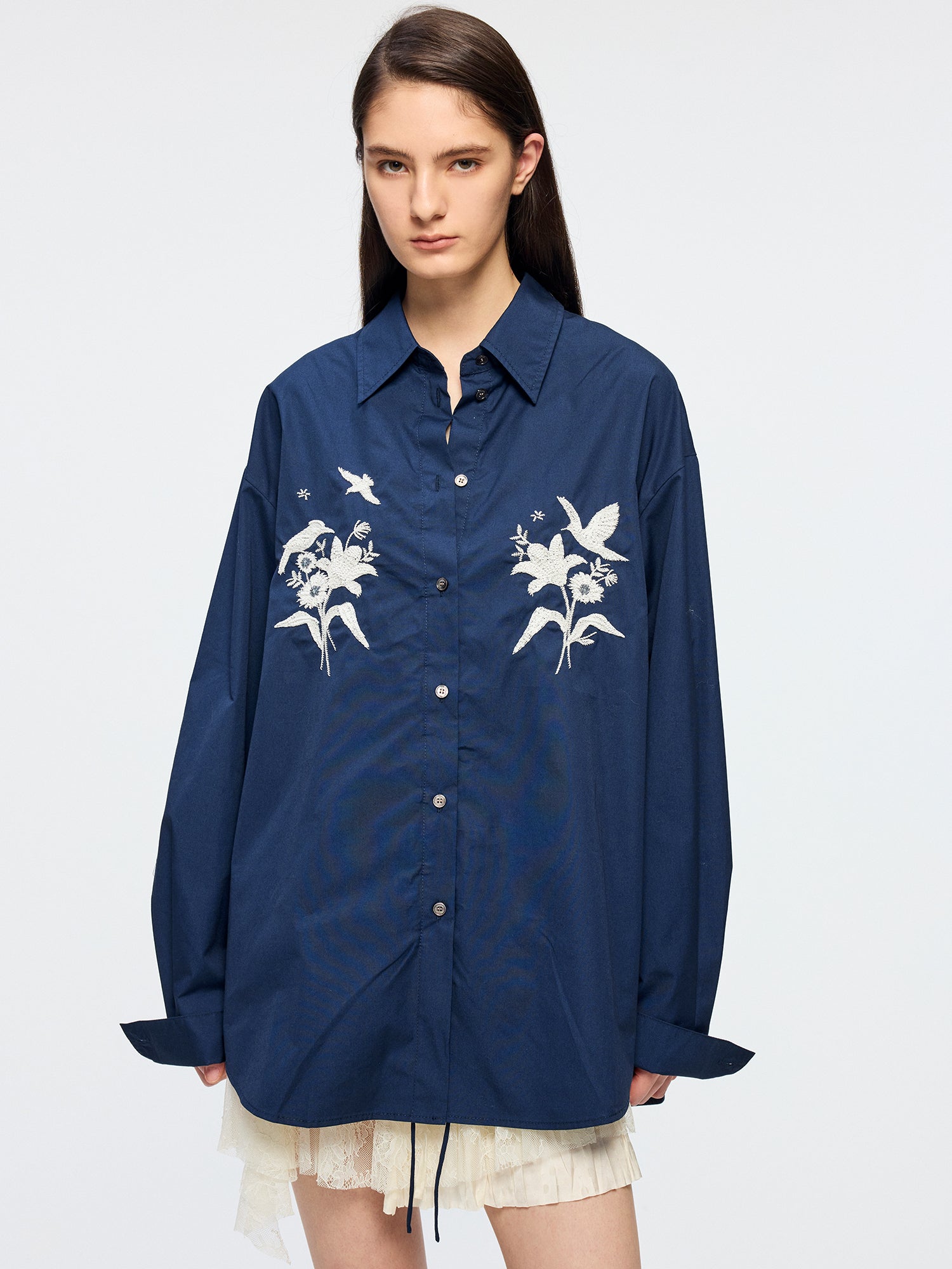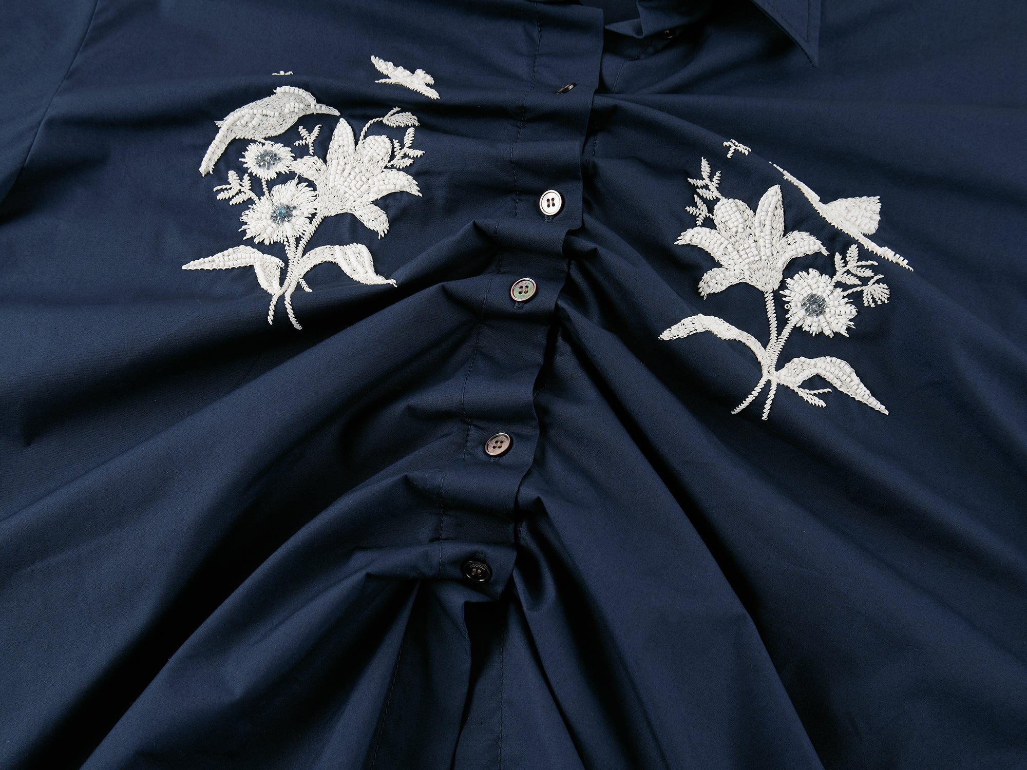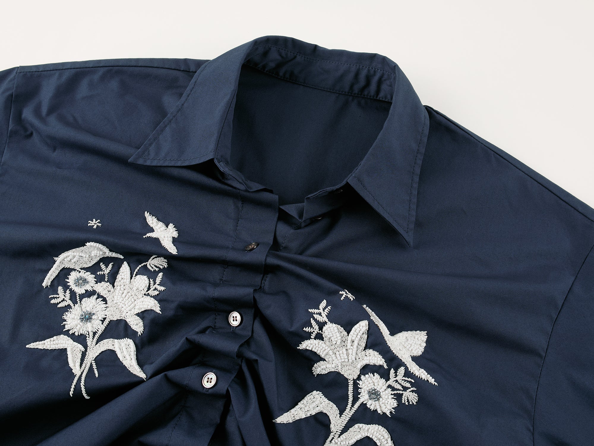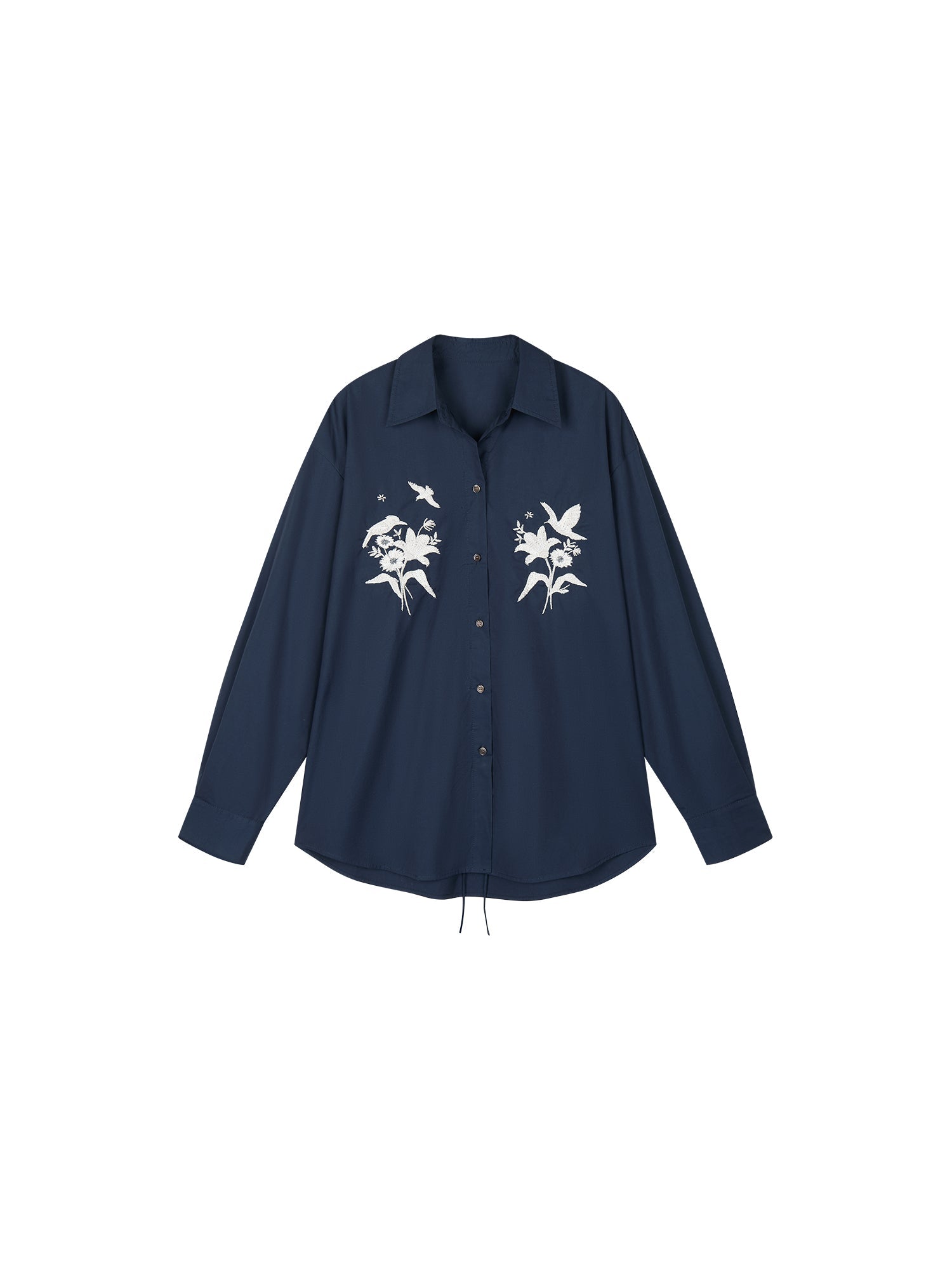 Beaded embroidered bird drawstring shirt