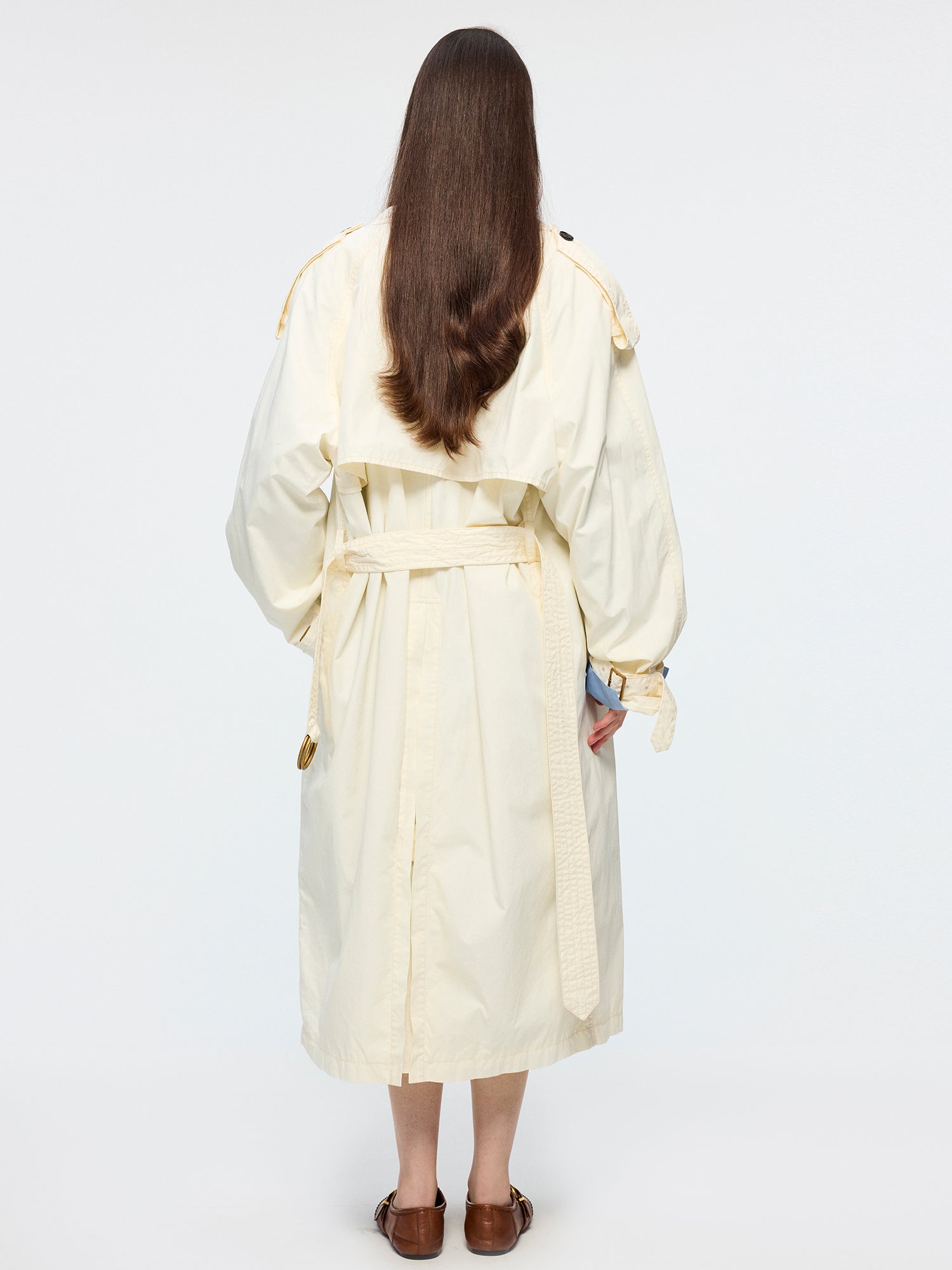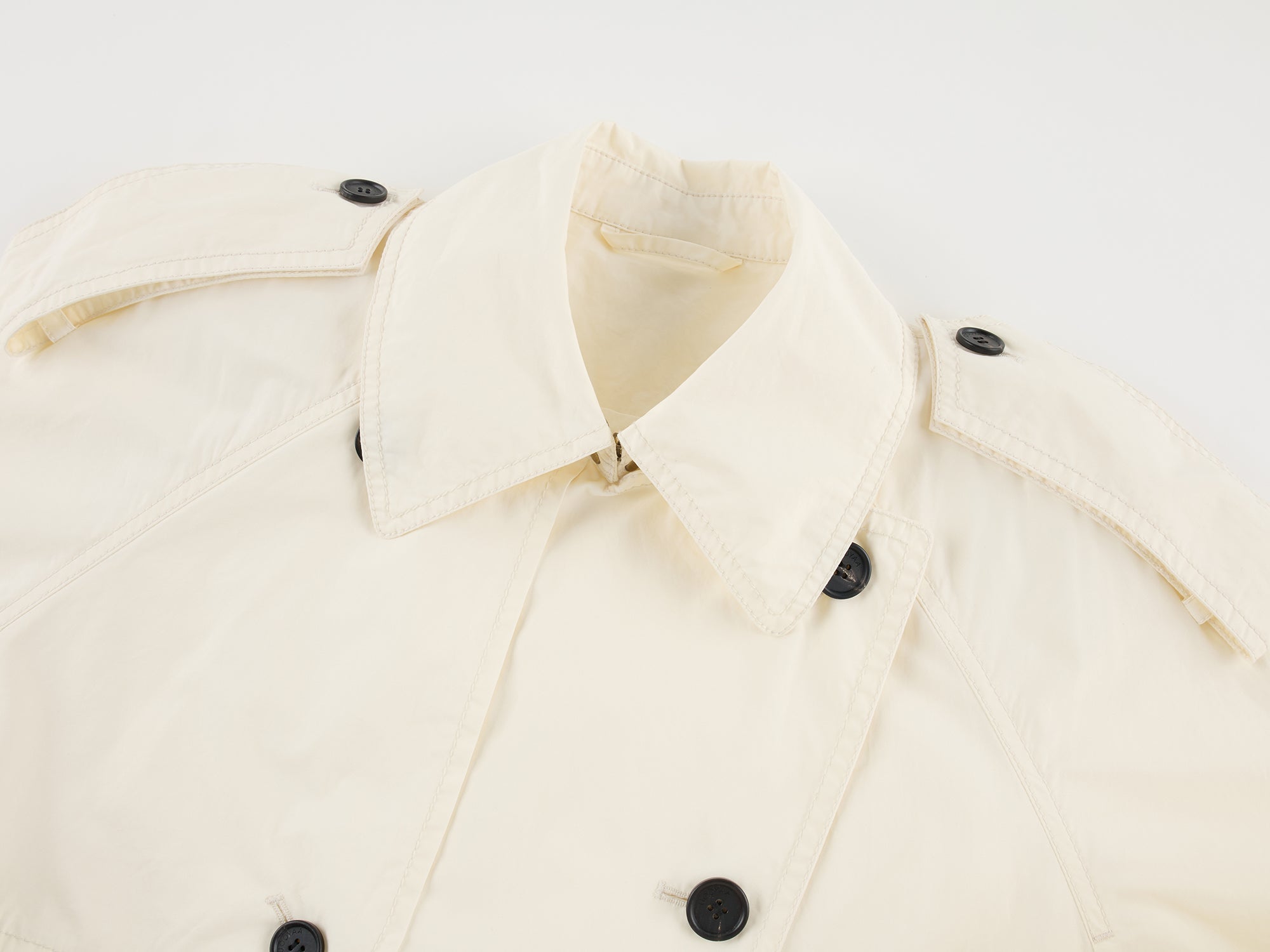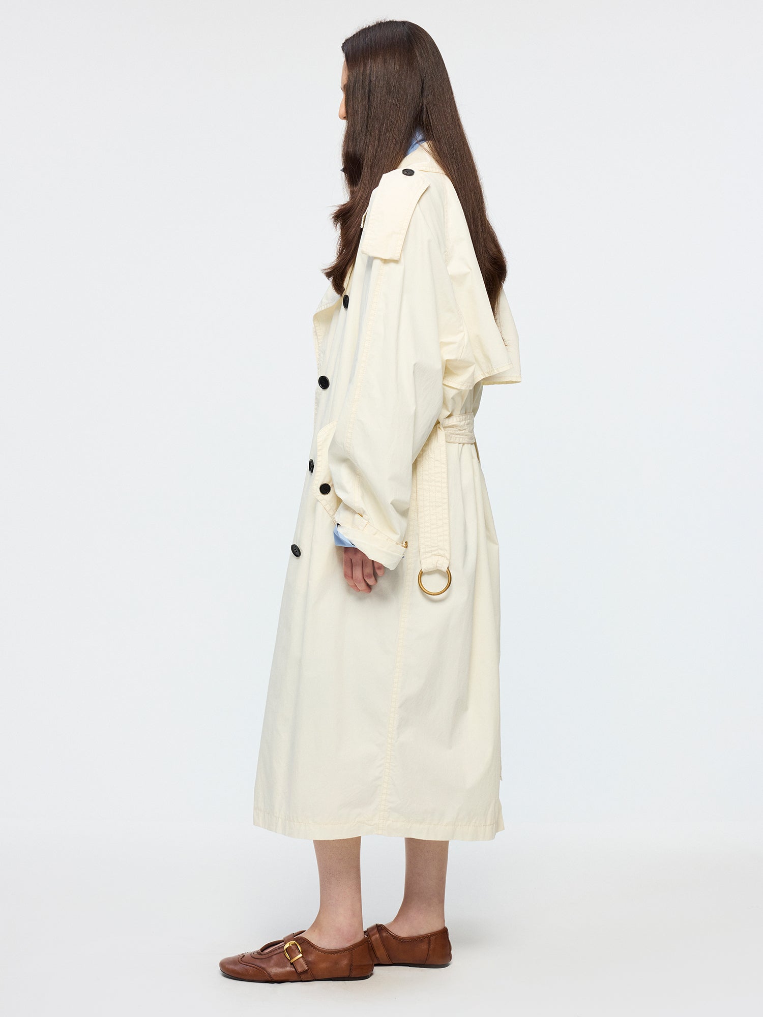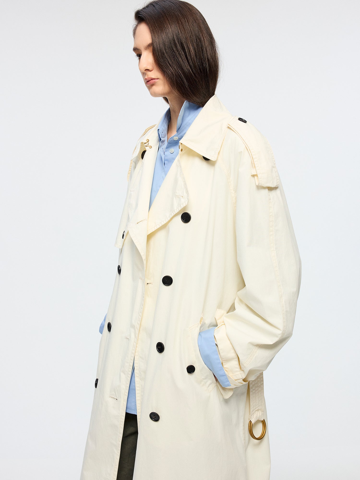 Relaxed fit off-white trench maximizes the casual atmosphere.Fabric:
