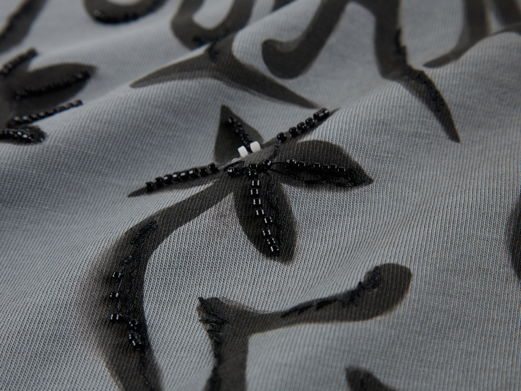 Irregular distressed spraying matches bead embroidery for exquisite detail and artistic vibe.Fabric: