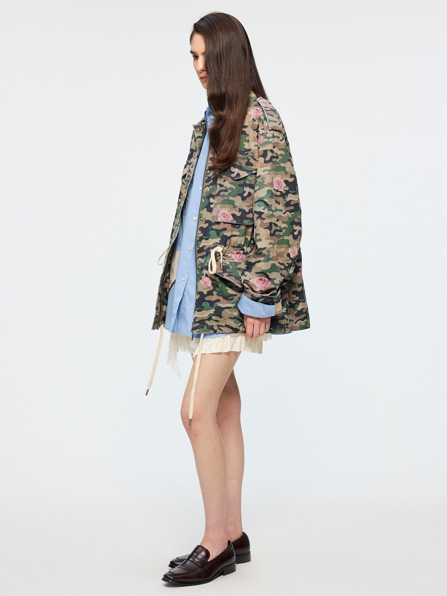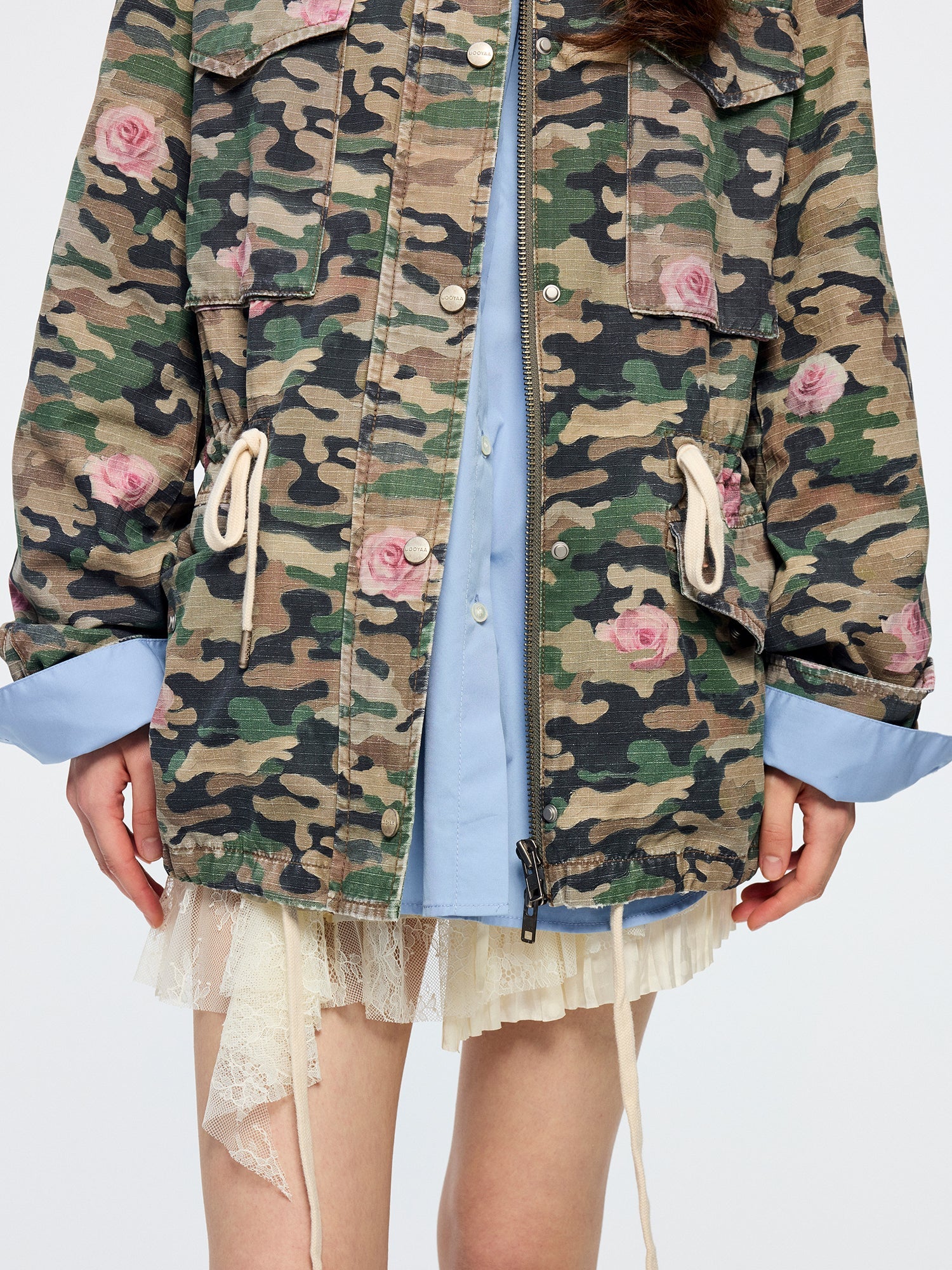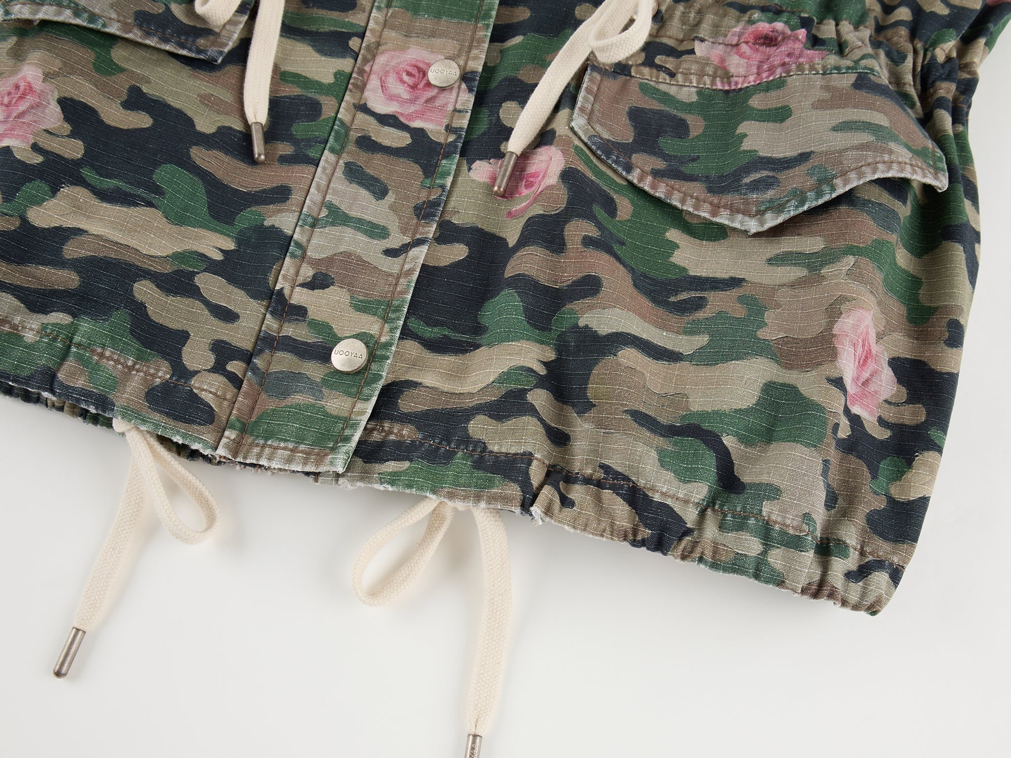 Oil painting texture expresses surreal rose camouflage, giving the M43 jacket a whimsical, romantic style.