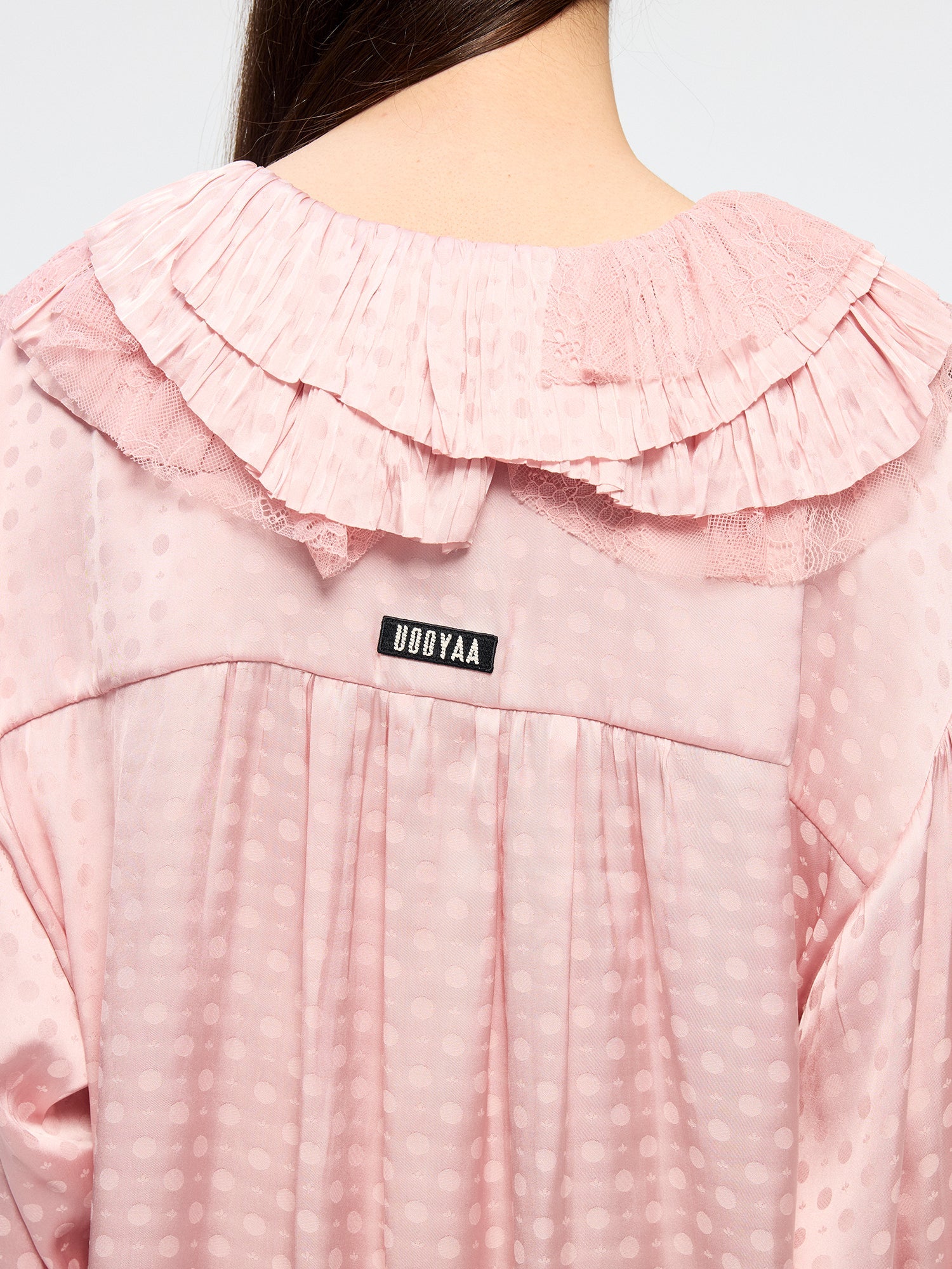 Lace patchwork ruffle collar jacquard shirt