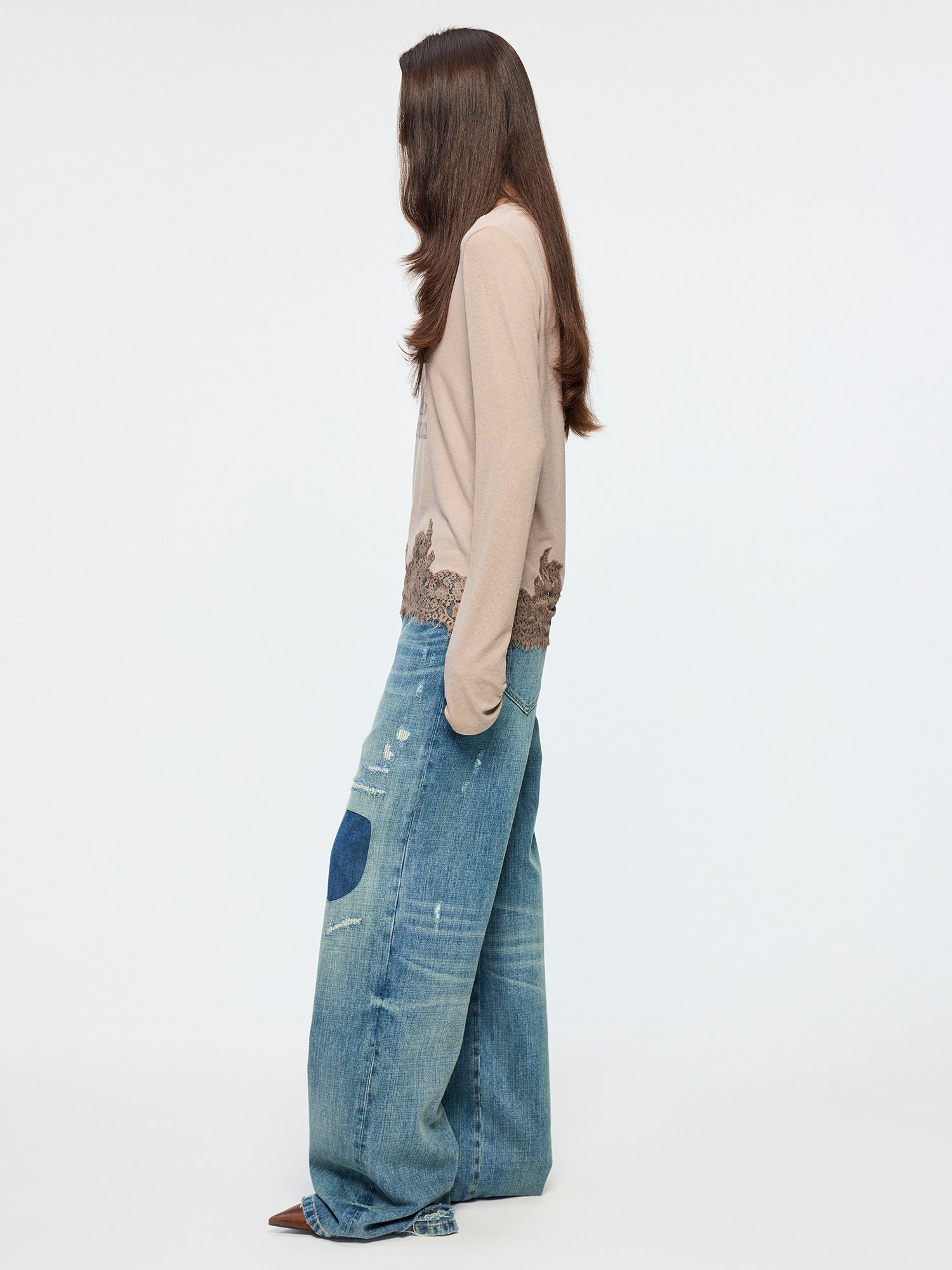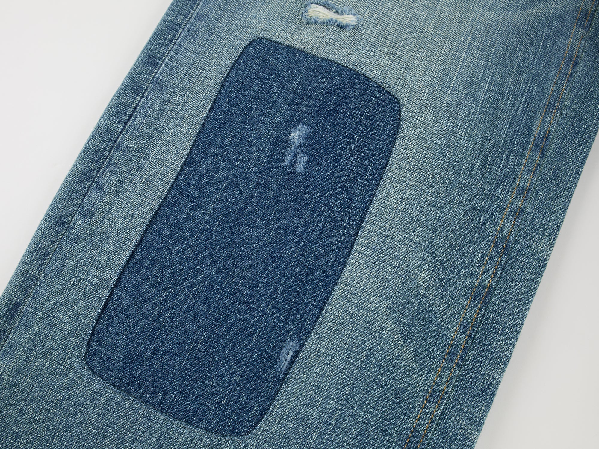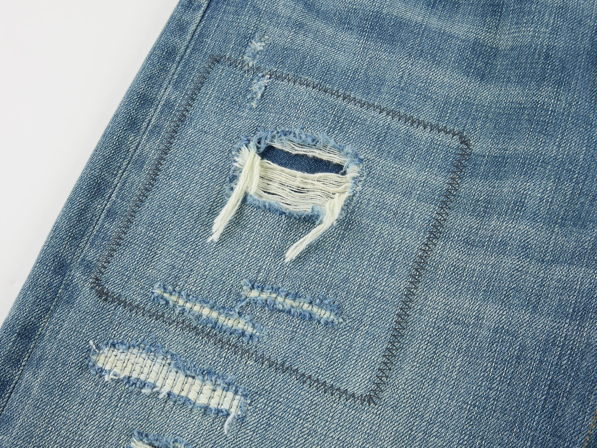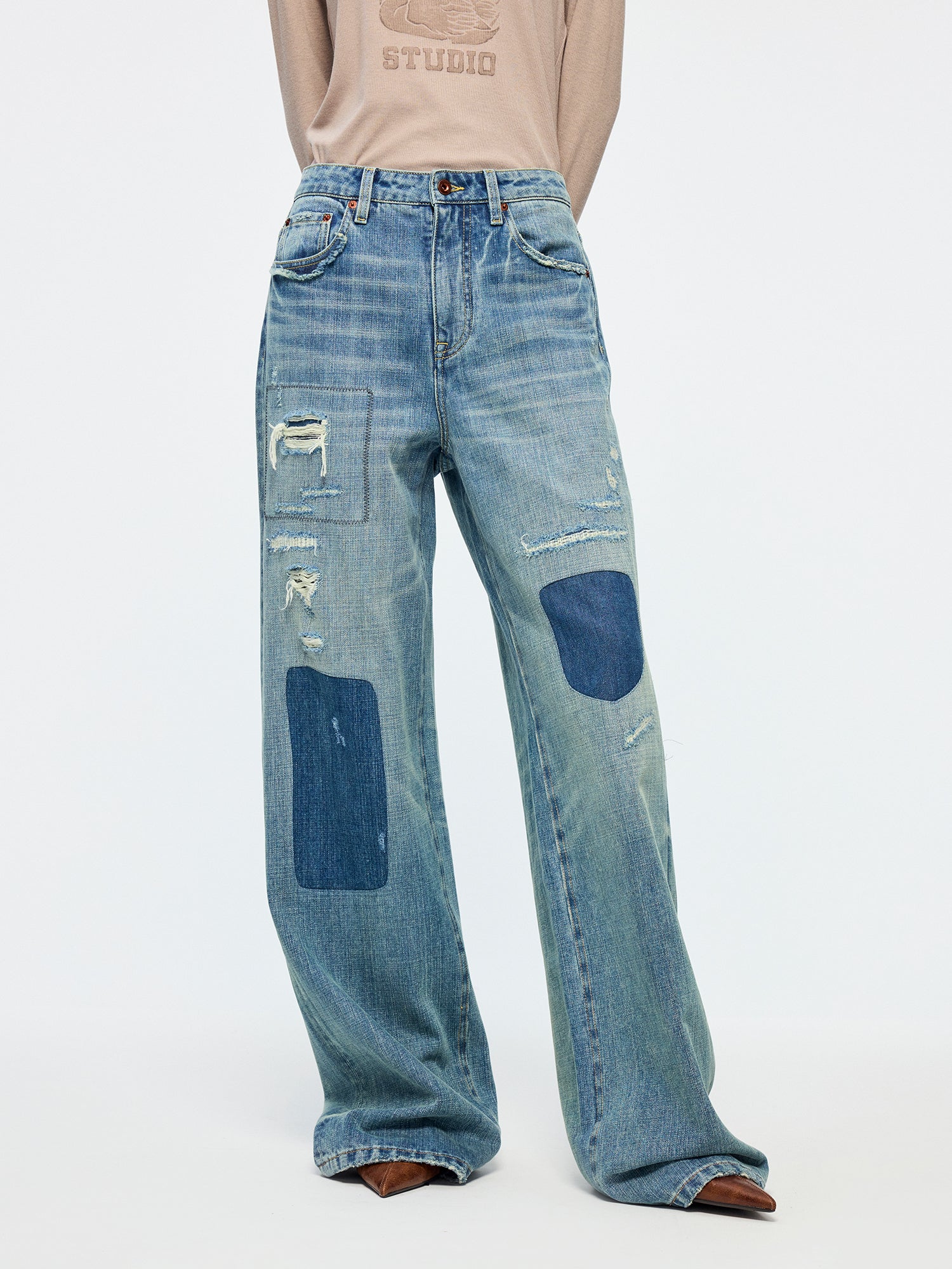 Distressed patchwork jeans