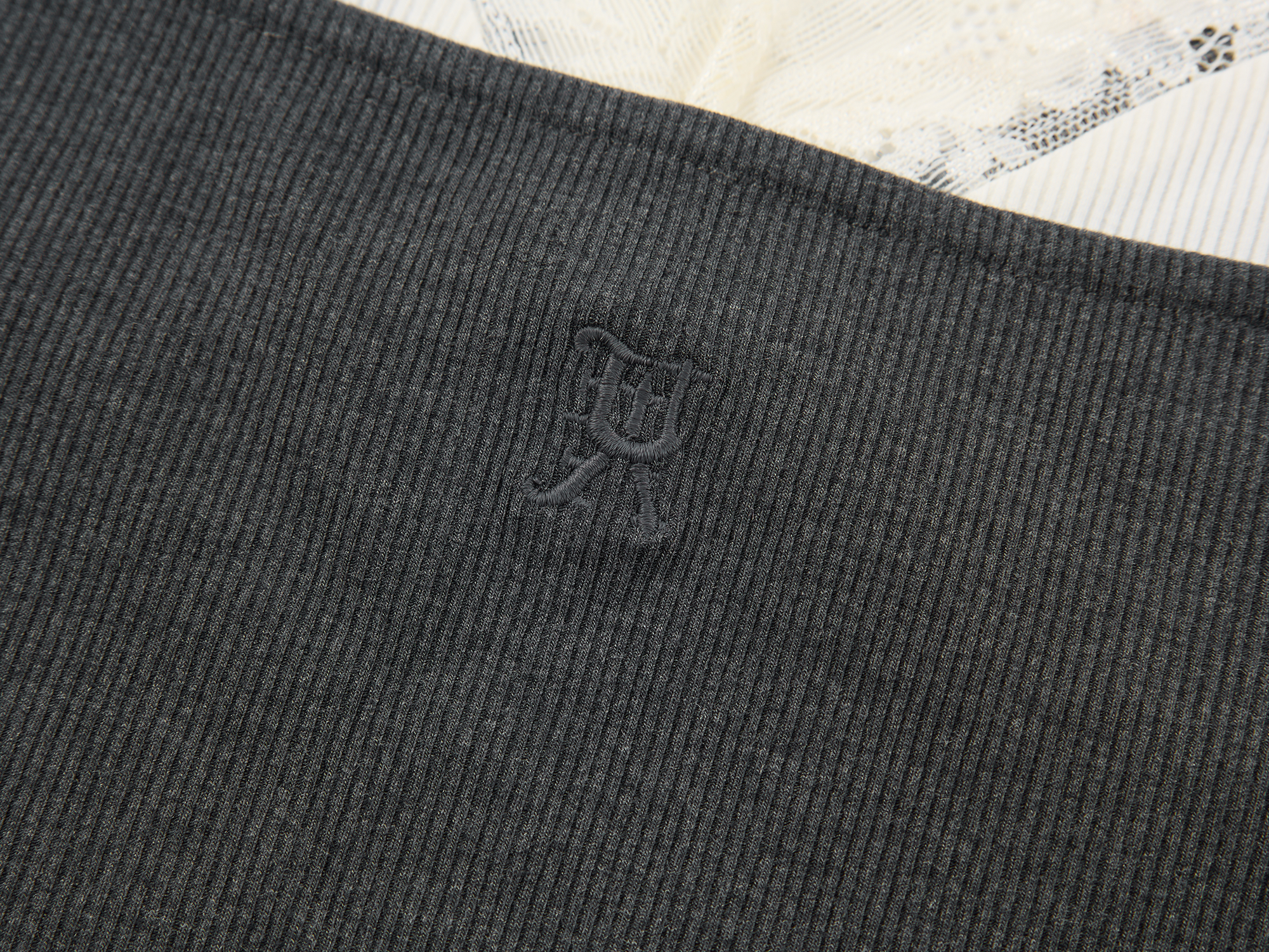 Grey Lace: 89.3% Nylon, 10.7% Spandex