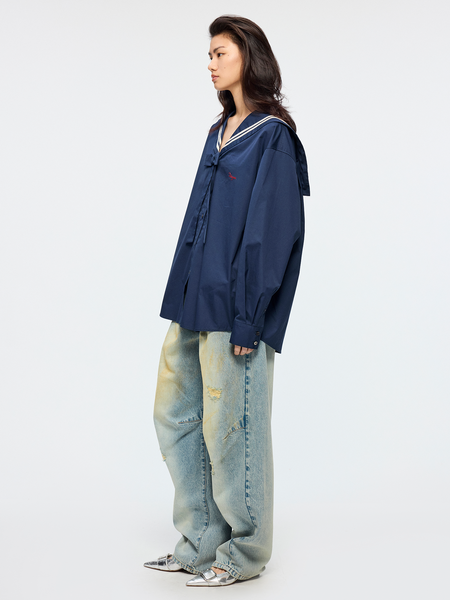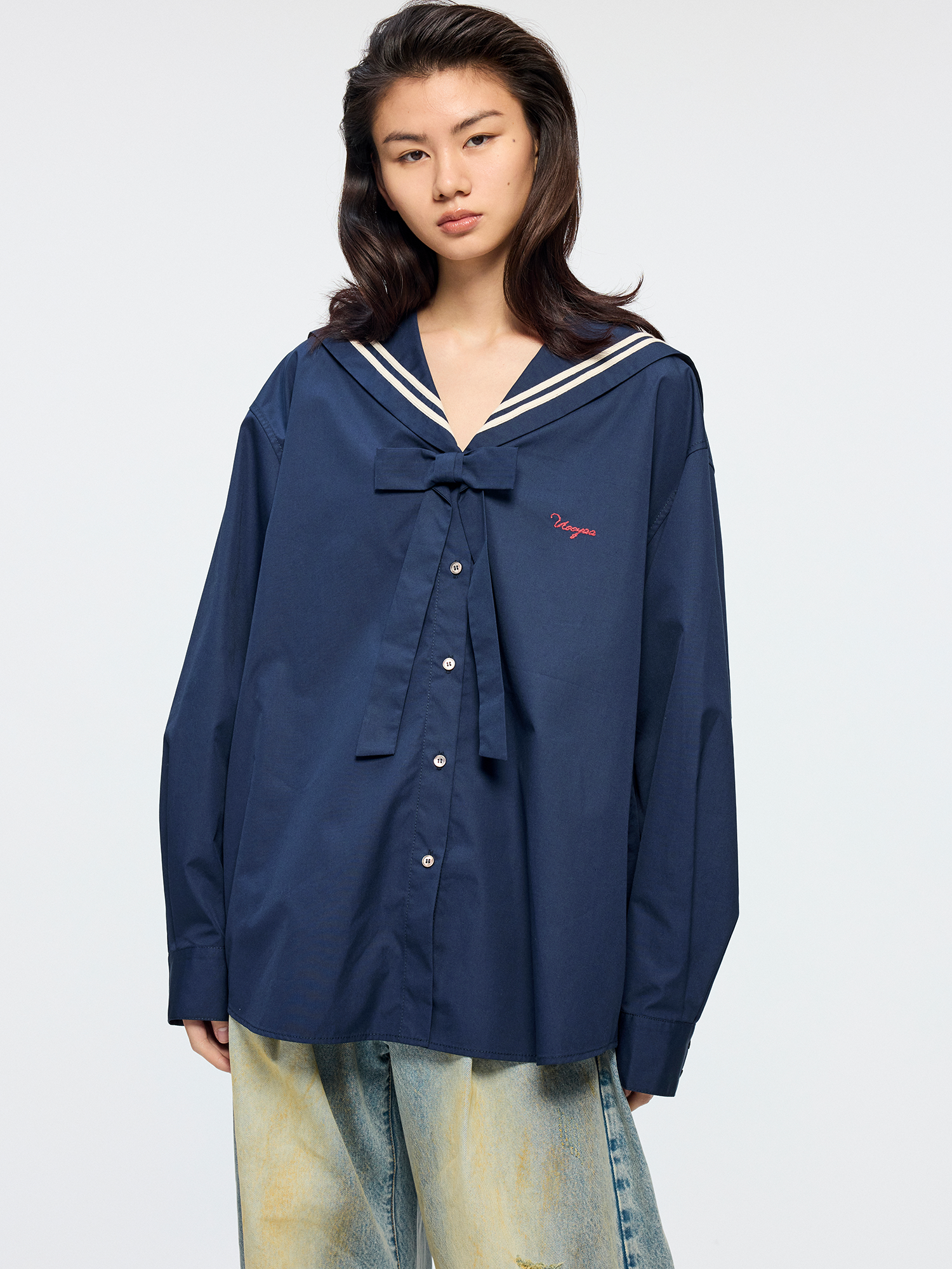 Bow sailor collar shirt