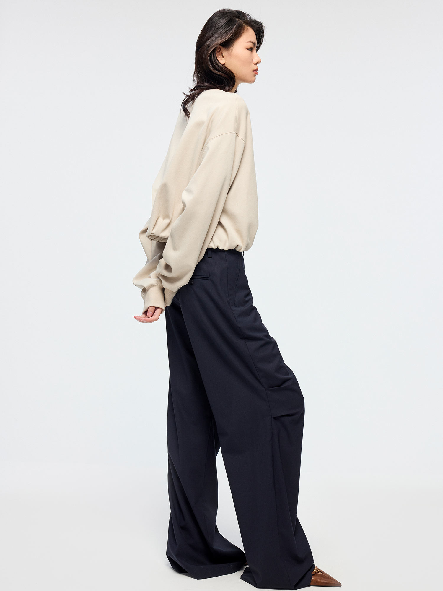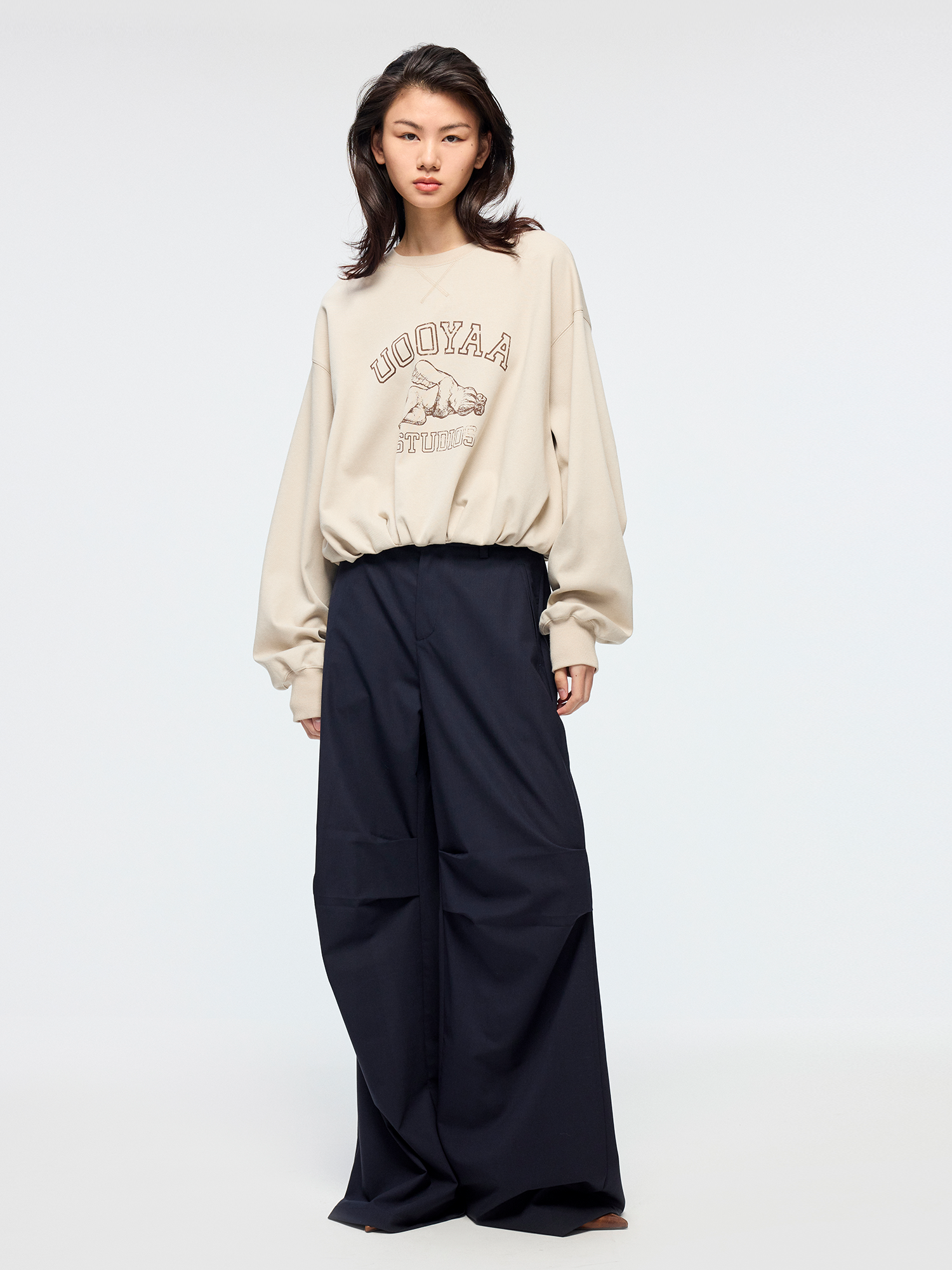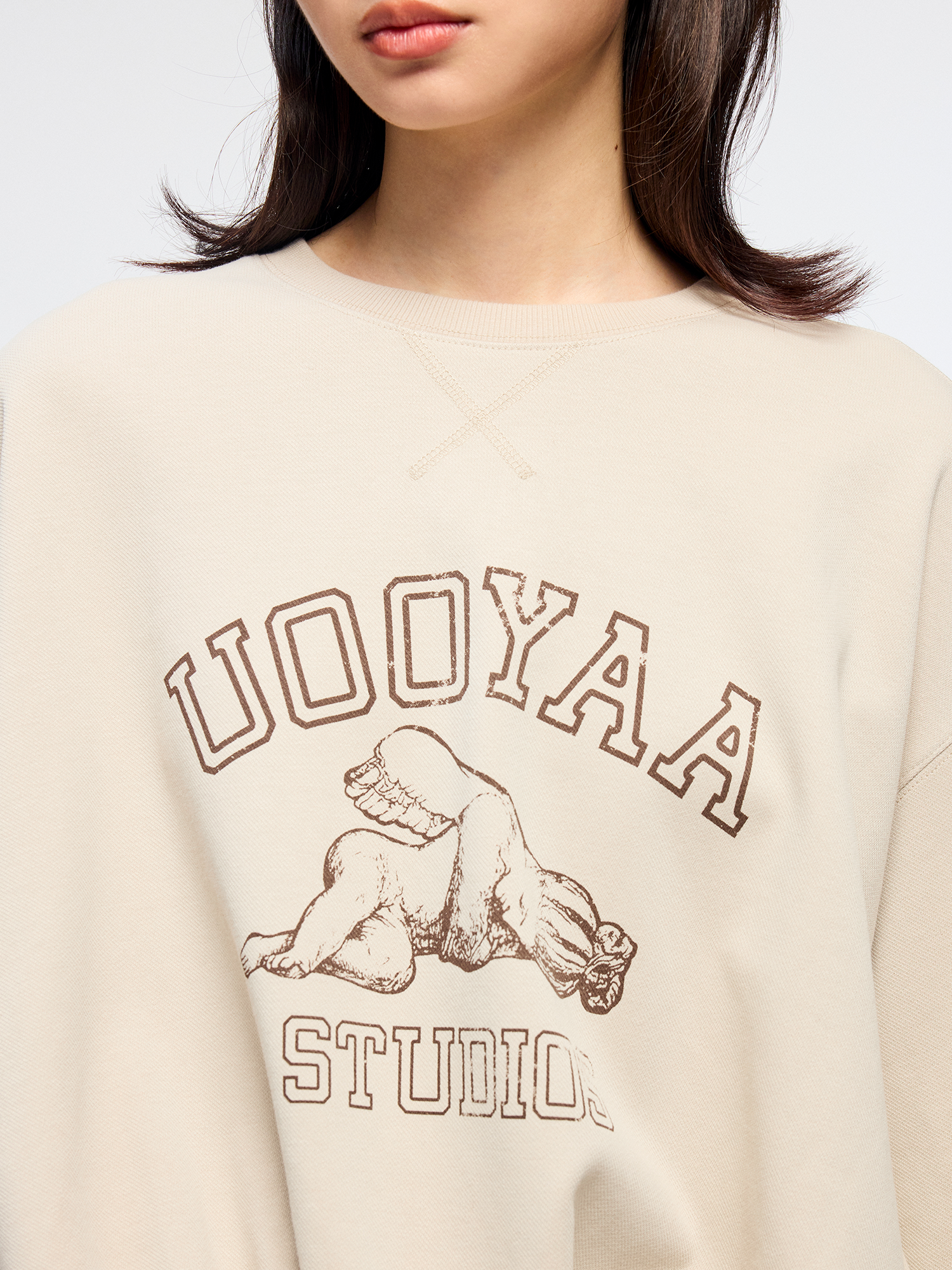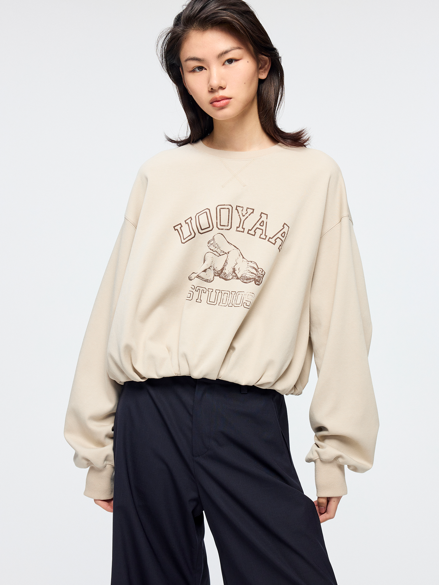 Angel collegiate print adorns this sweatshirt. Pleated pocket design at the hem adds a casual, playful twist.