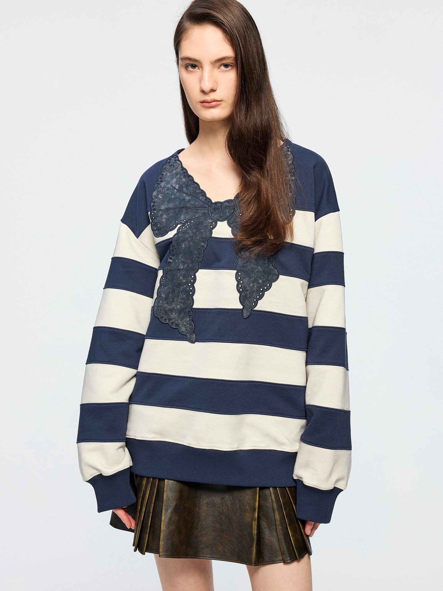Breton stripe bow sweatshirt