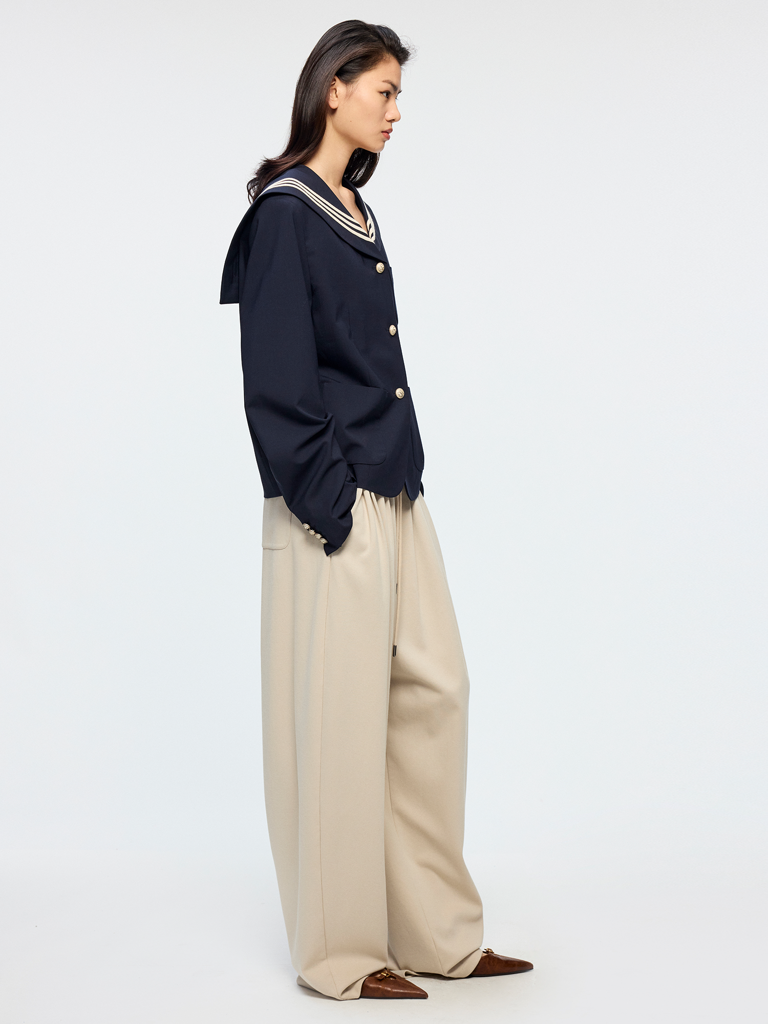 Machine washable wool sailor collar blazer