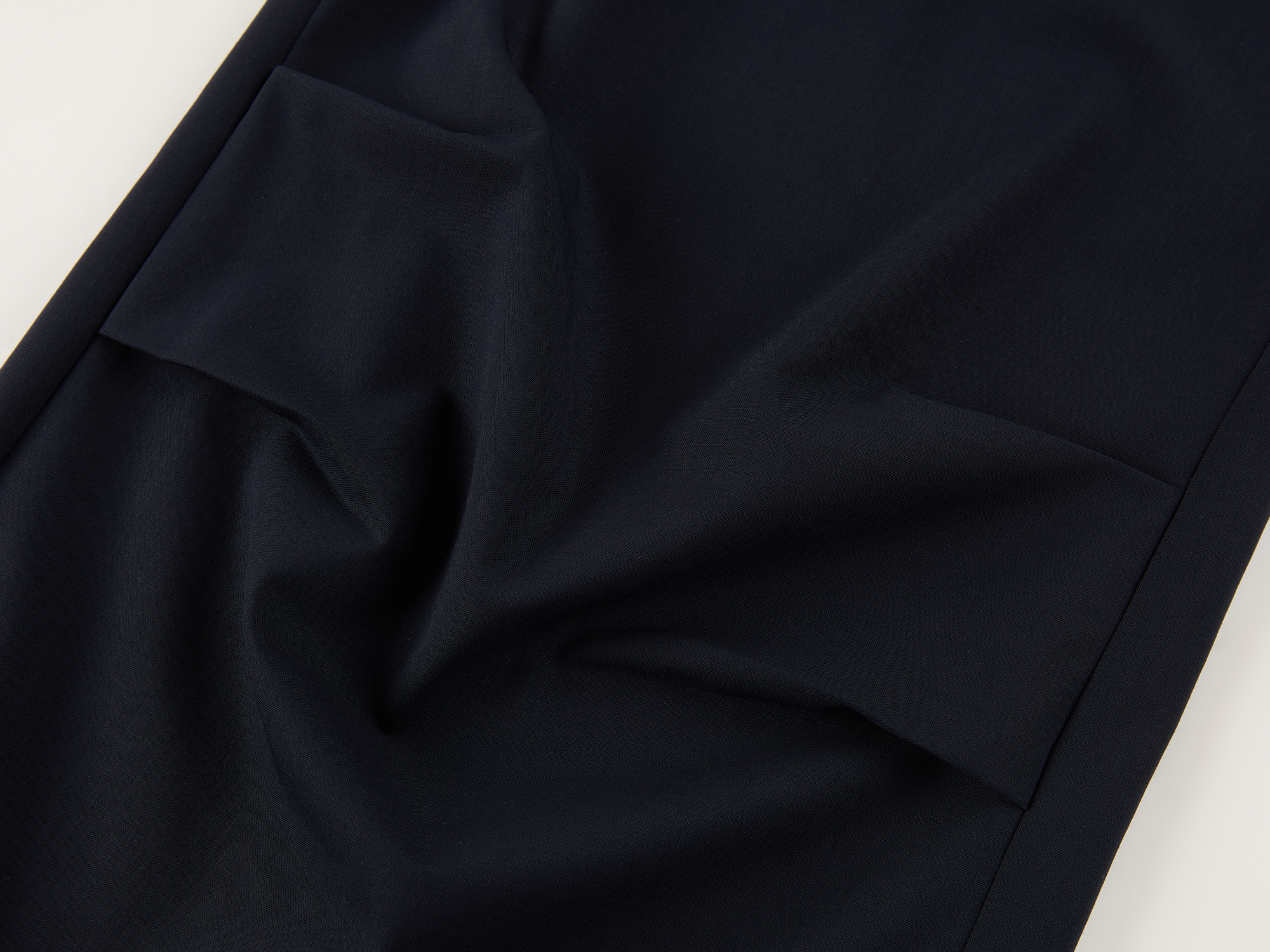 Selected machine-washable worsted wool offers luxurious texture and skin-friendly comfort, balancing utility with high-end style.Fabric: