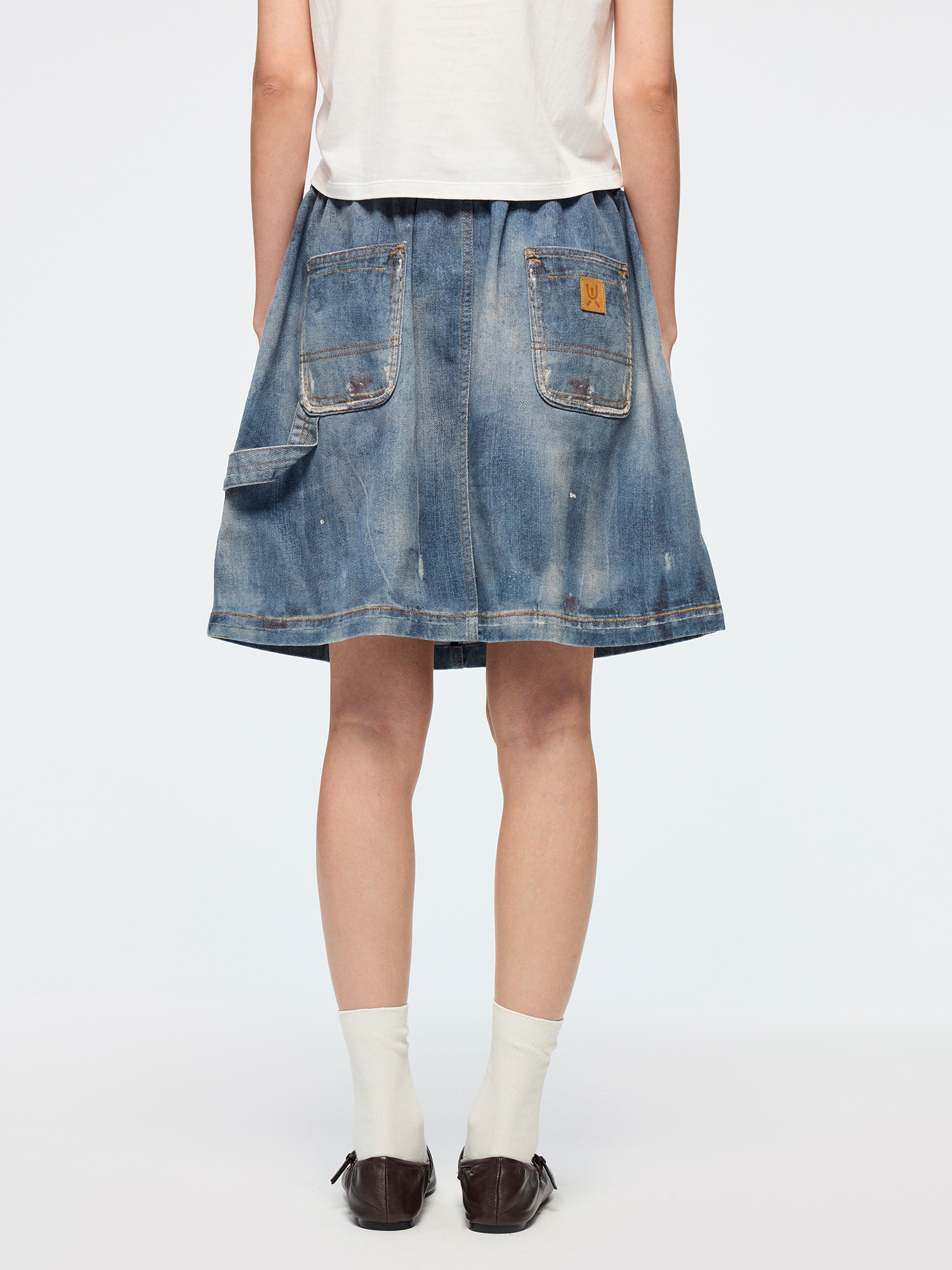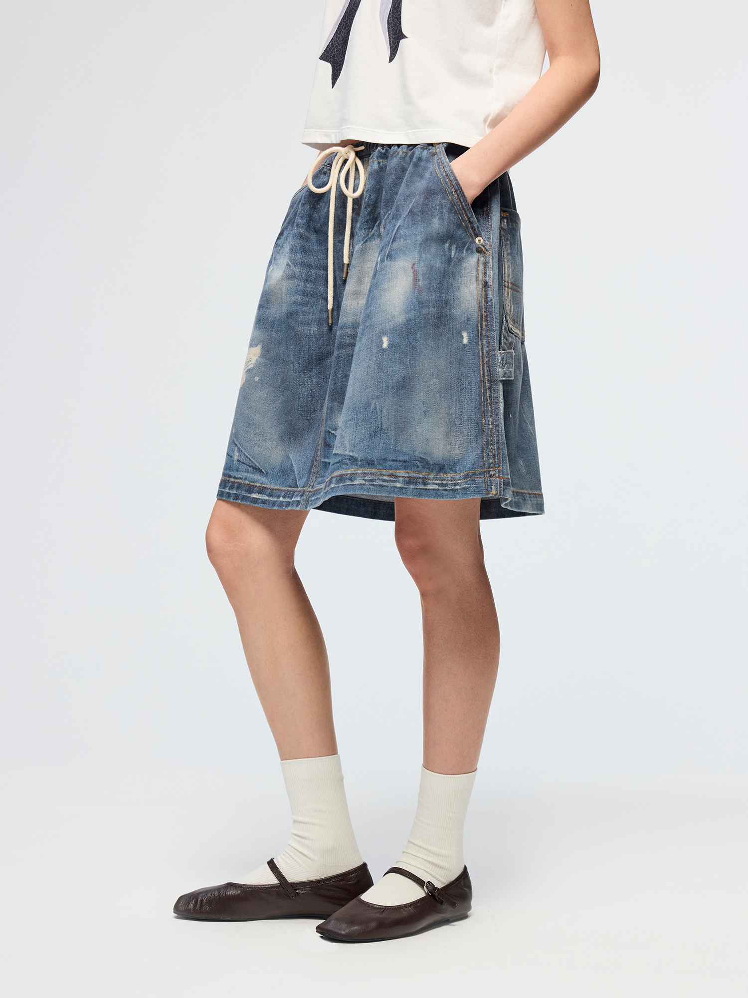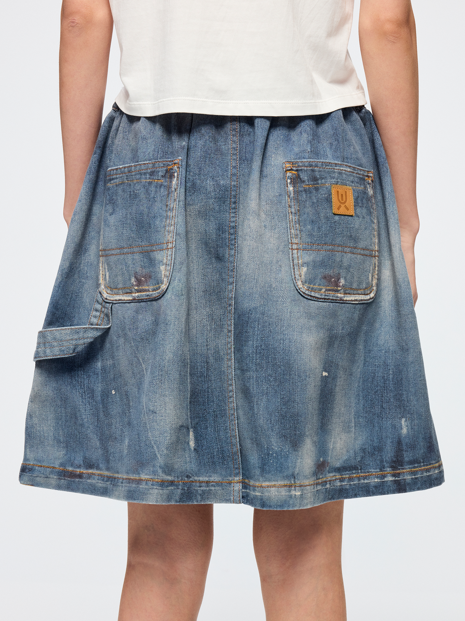 Realistic denim details (wash, creases, stitching, leather patch) presented via trompe l'?il print¡ªsurreal and fun.