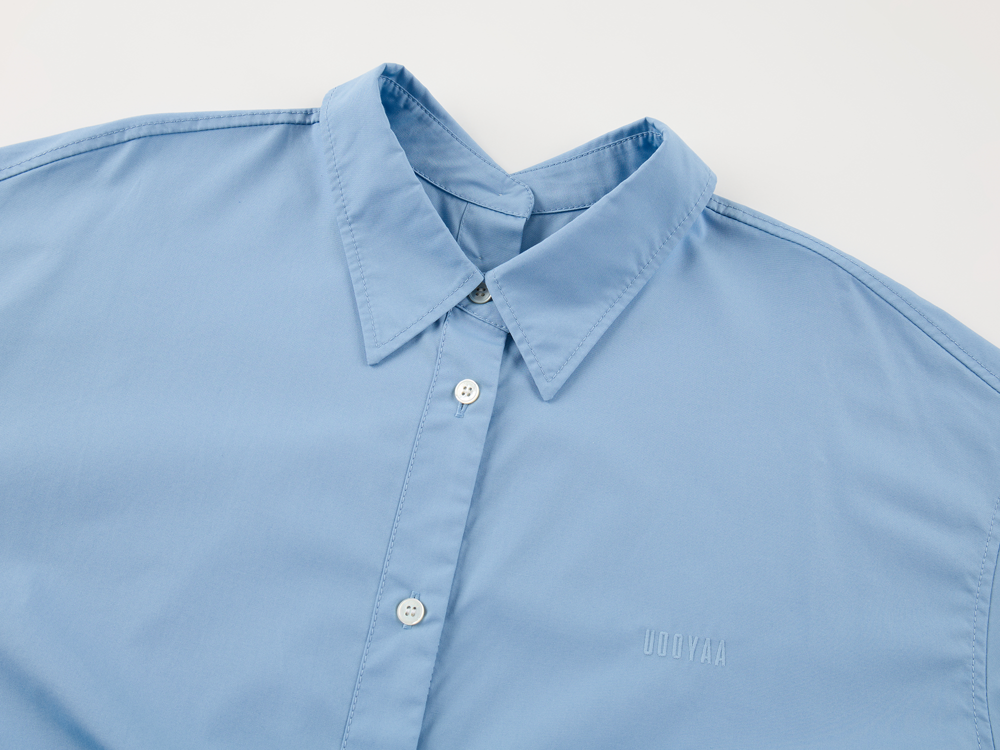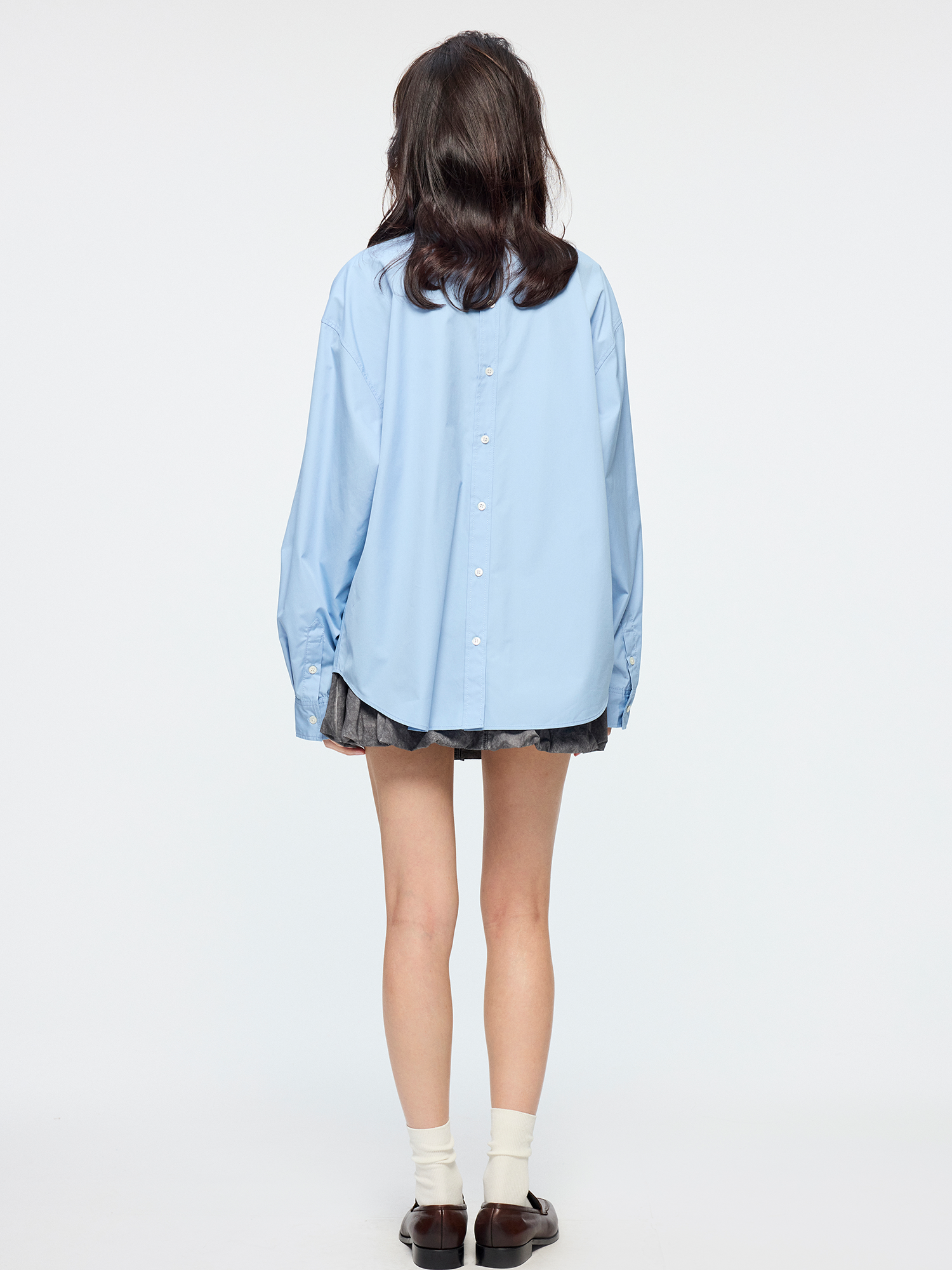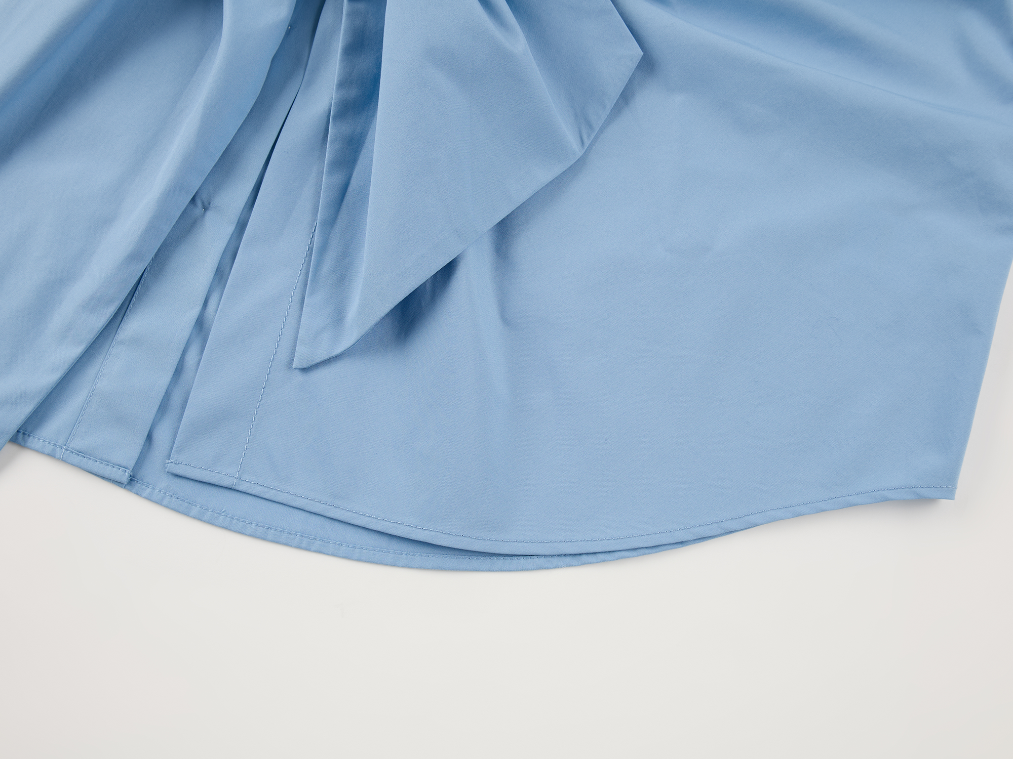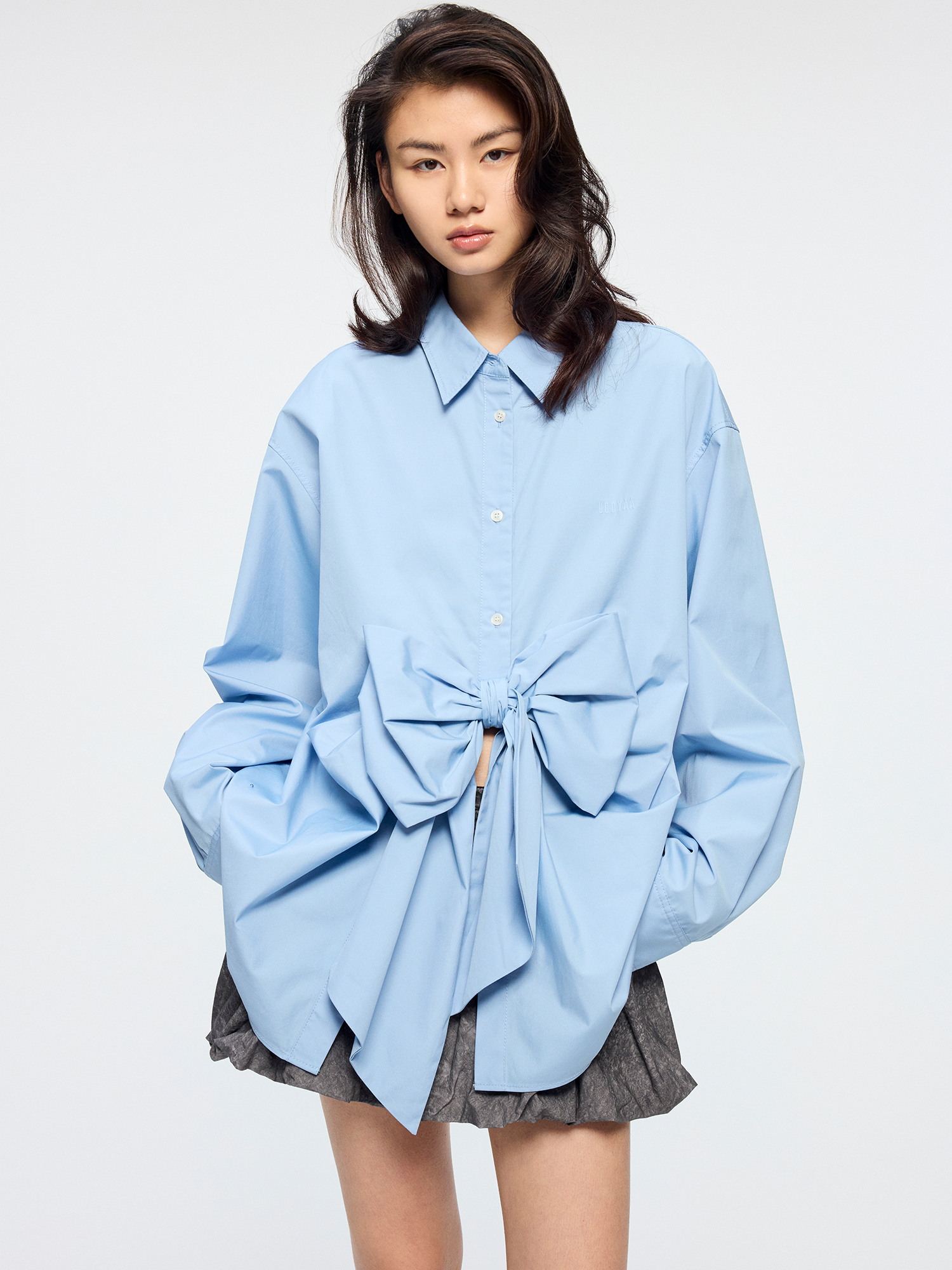 Reversible design reinterprets the classic men's shirt, accented with a bow tie structure at the hem?casual and romantic.