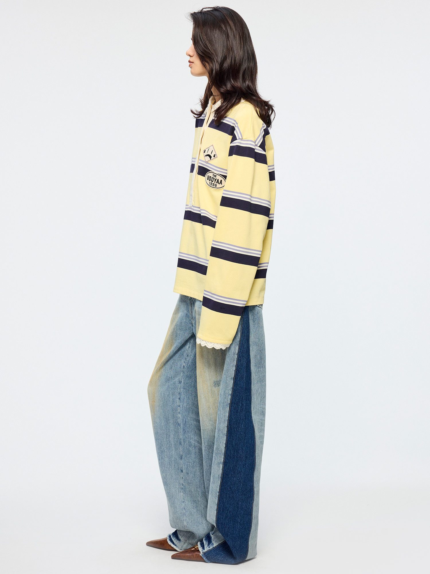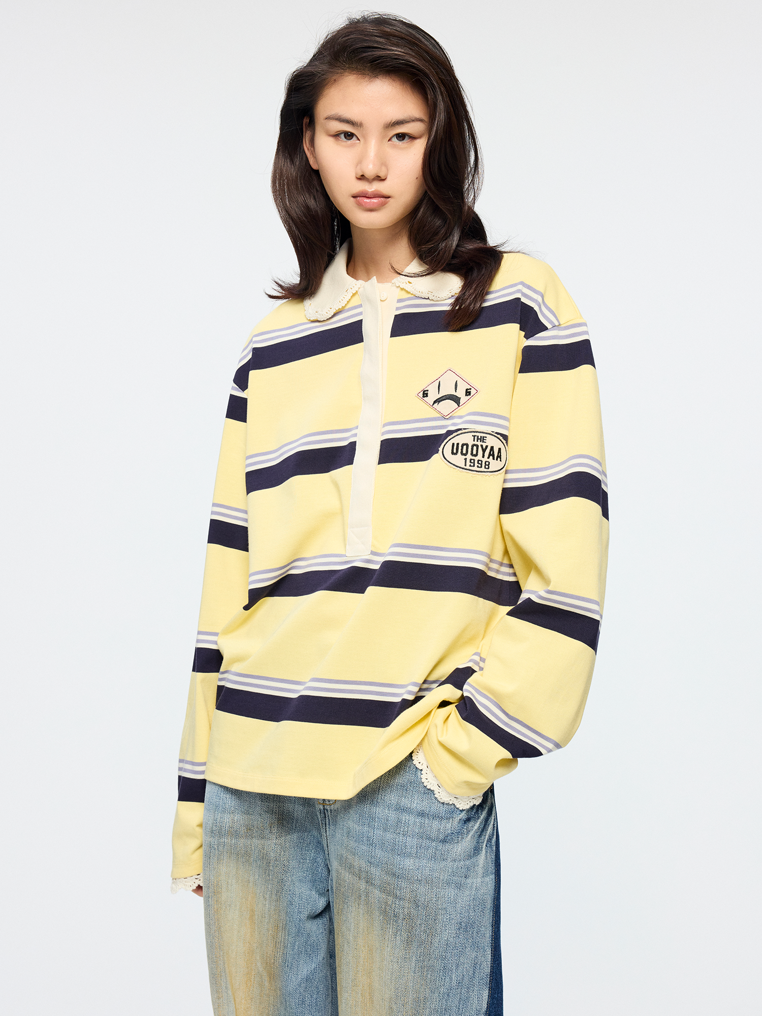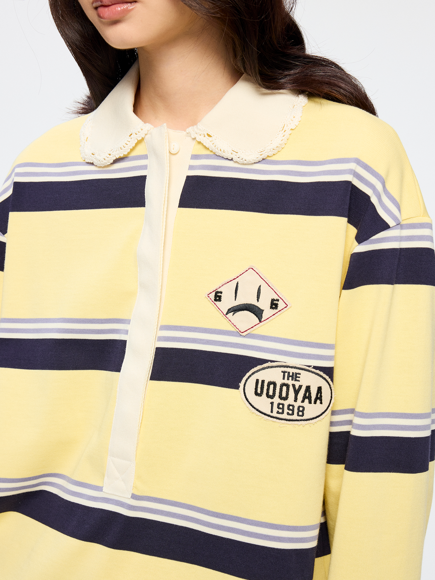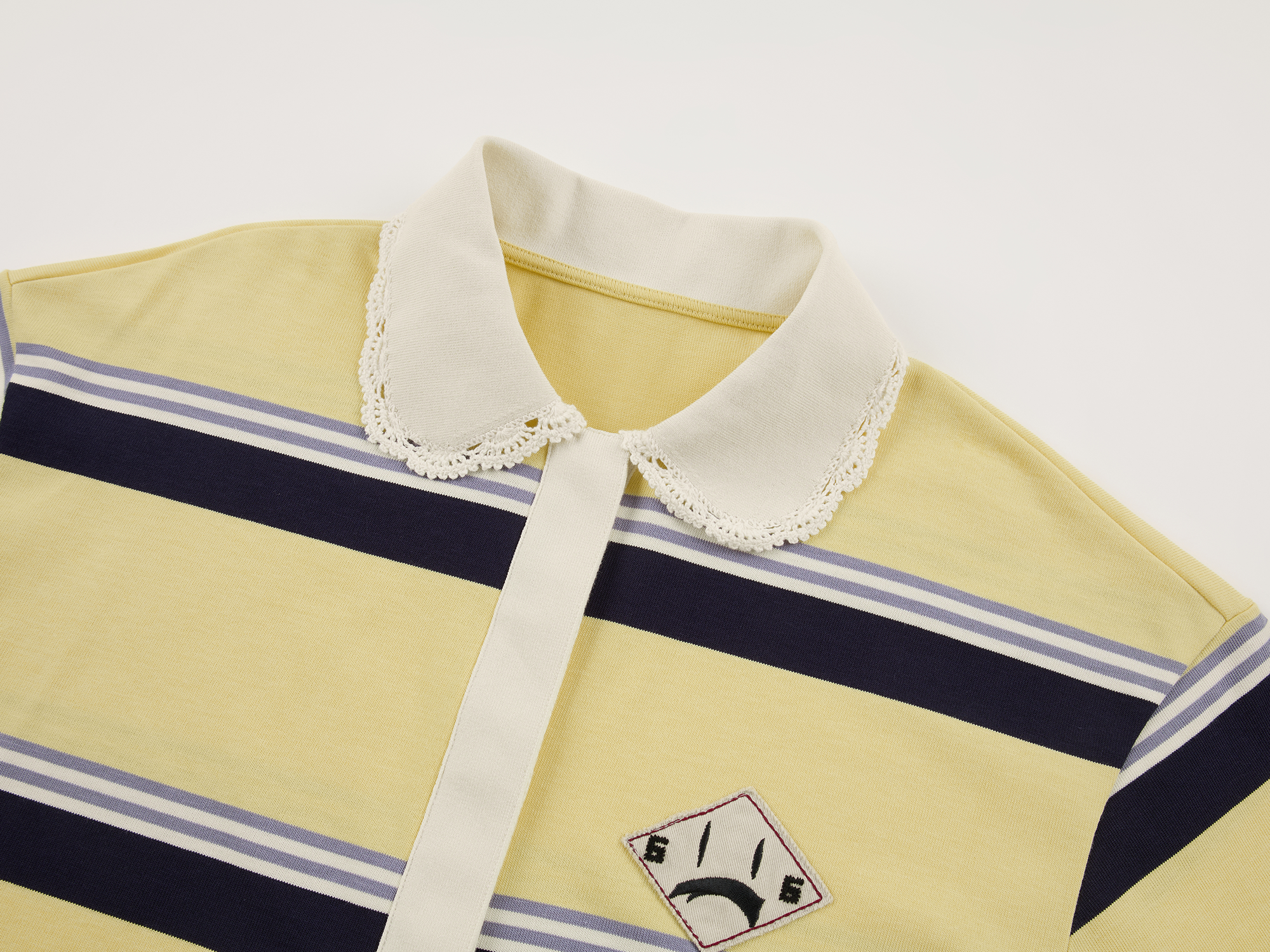 Applique badge Peter Pan collar striped polo