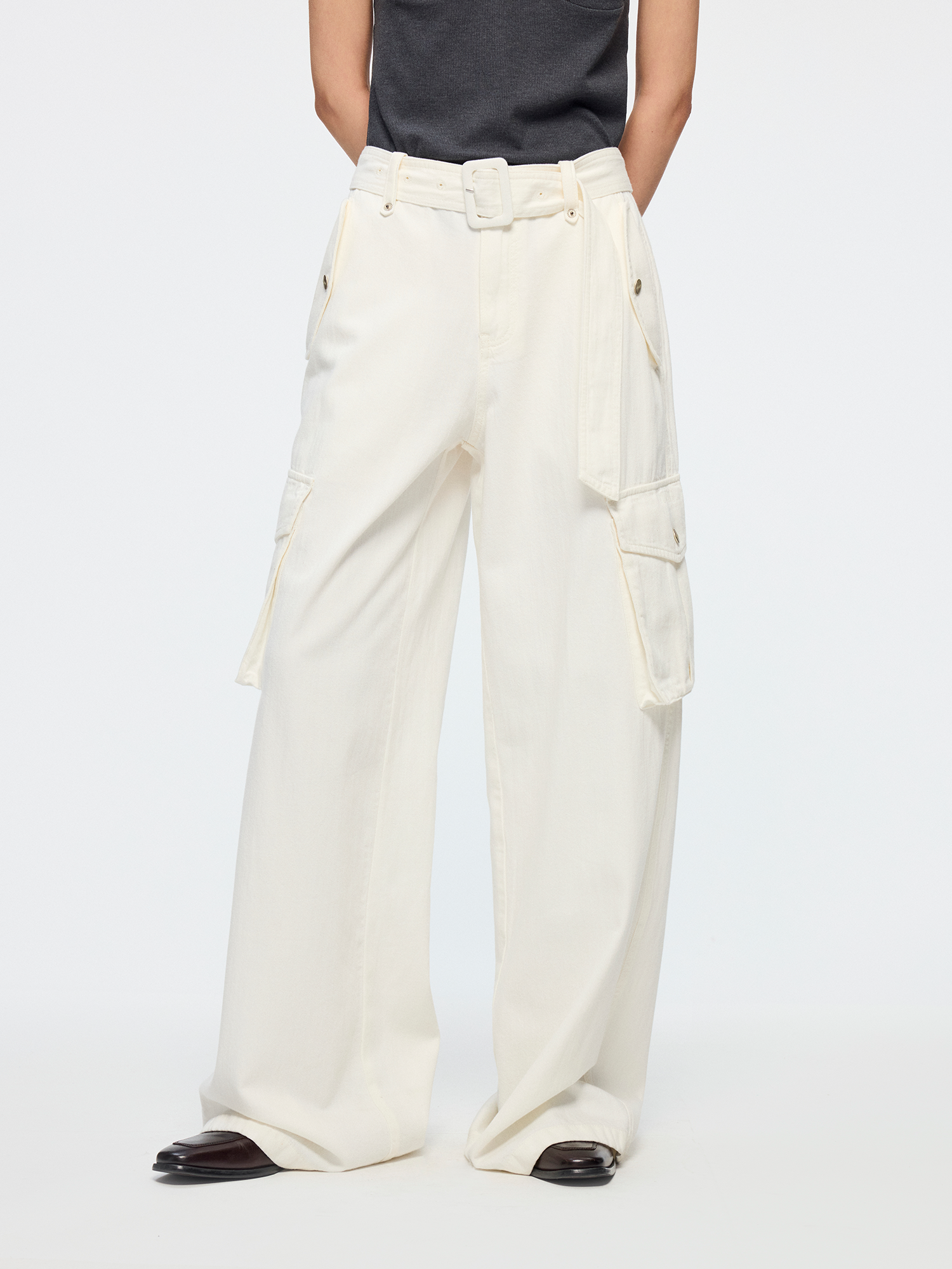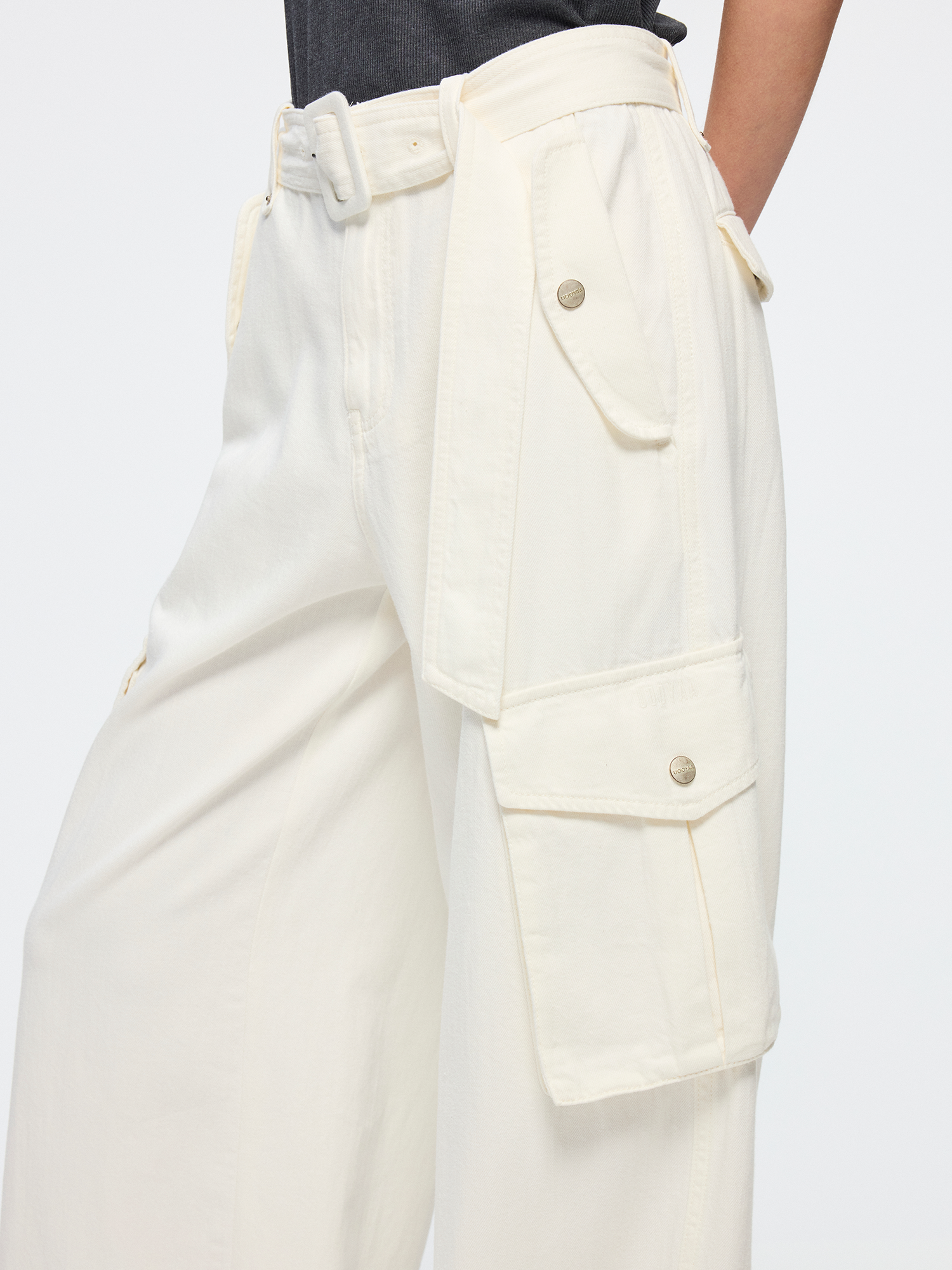 Classic cargo pants crafted from soft washed cotton in a loose fit with self-fabric belt?relaxed and casual.
